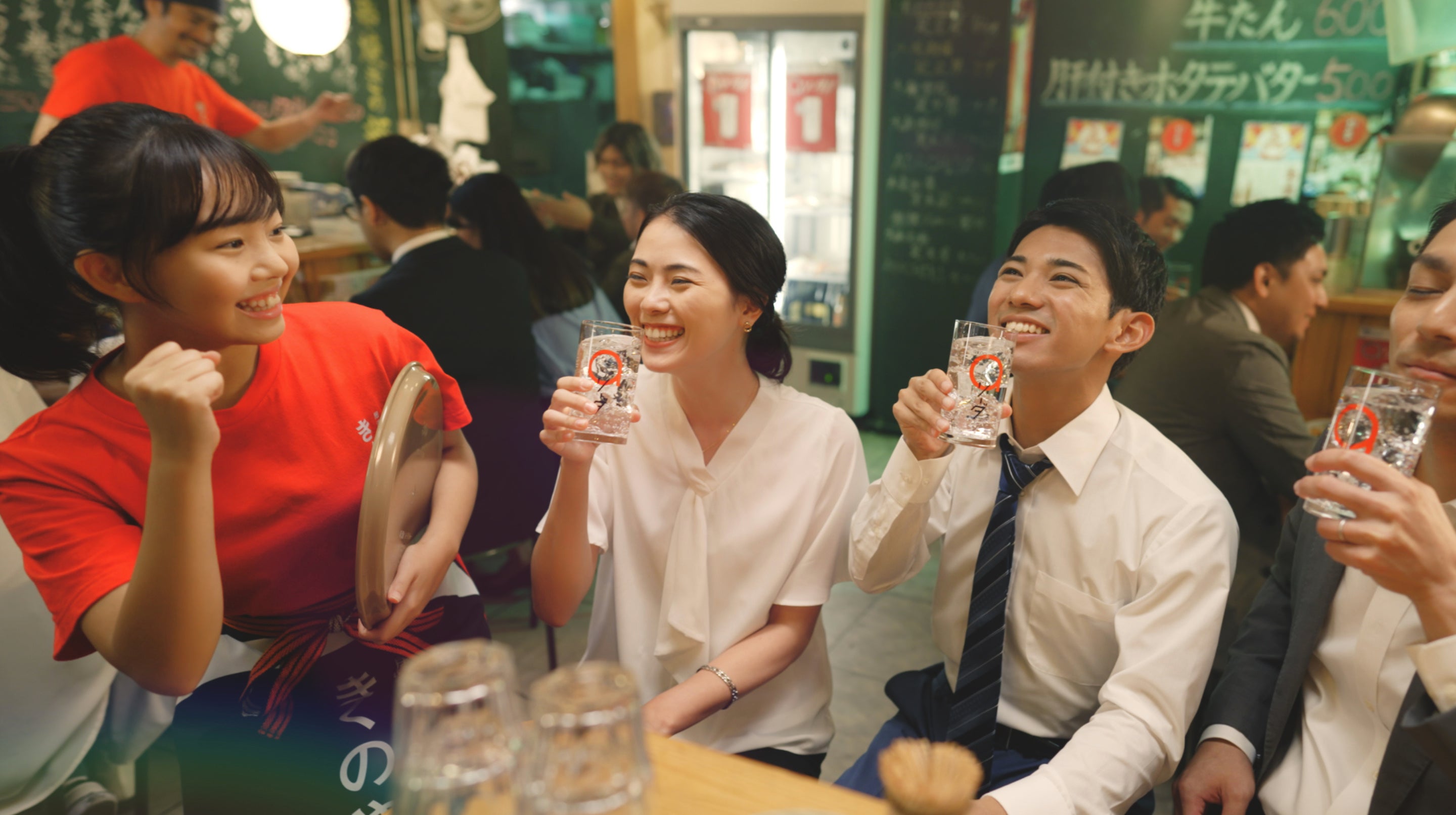 CMの撮影場所となったのは、居酒屋の「足立屋」さま。実際の店舗だからこそ、リアリティのある世界観をつくることができました。実は、今後は足立屋さまとのコラボイベントも実施予定。CMの「きくのや」の世界観を、リアルな店舗で体験しながら、菊之露akariの「aソーダ」を楽しめます。