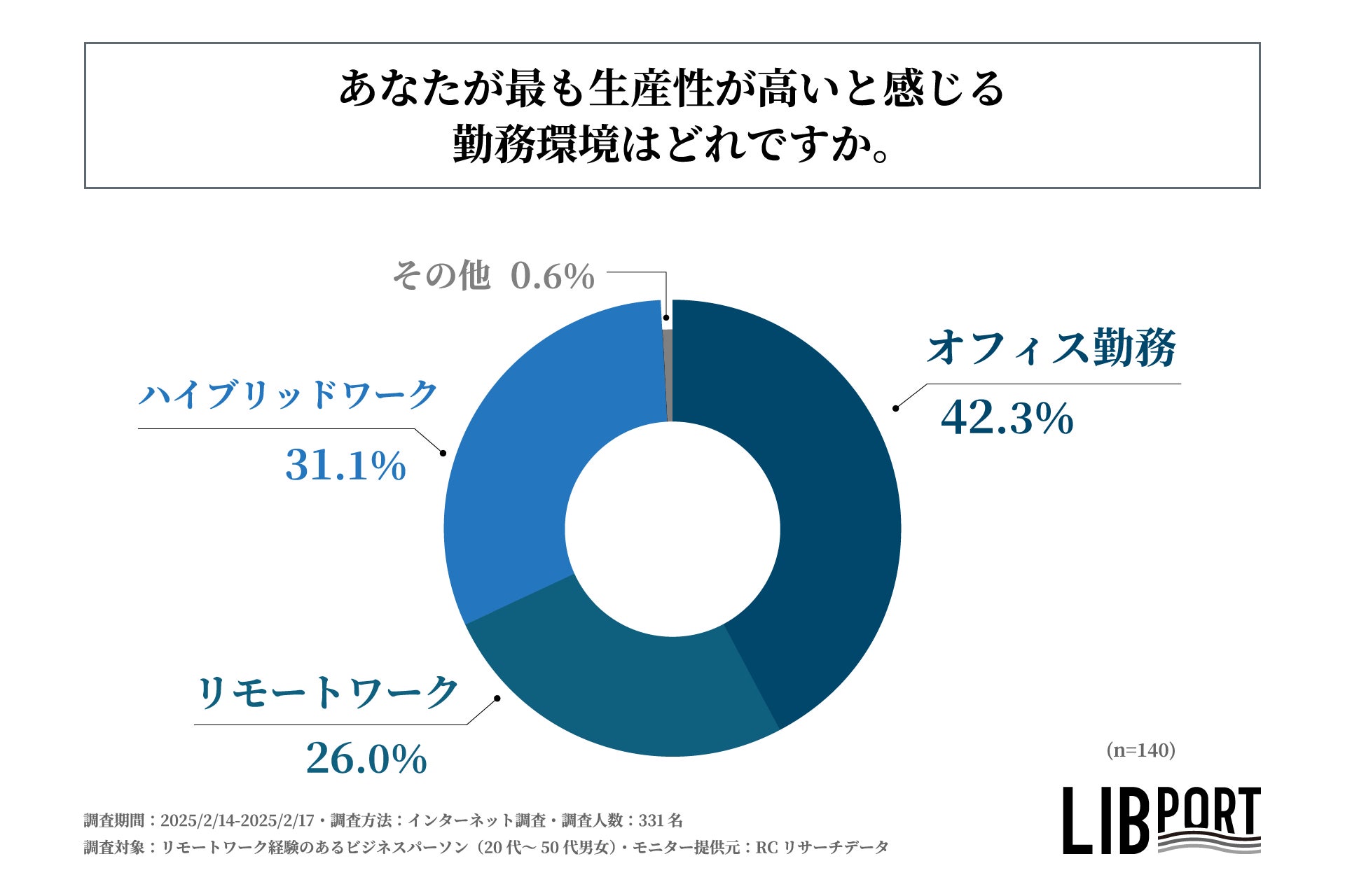 リモートワーク経験のあるビジネスパーソンの多くが、最も生産性が高いと感じる勤務環境は「オフィス勤務」!リブポート株式会社が「ビジネスパーソンの働く環境と生産性に関する実態調査」を実施!