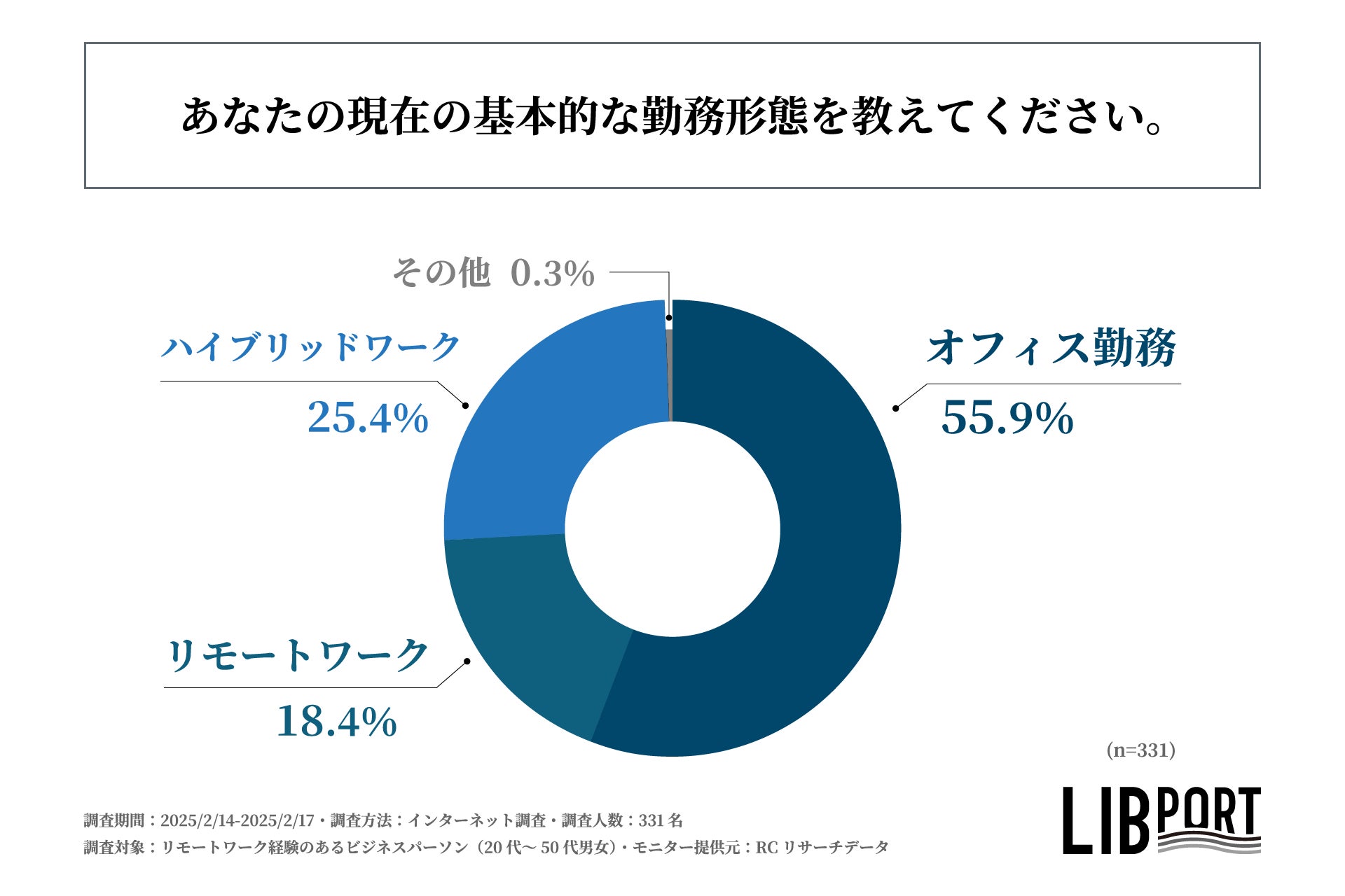 近年、大手企業の「オフィス回帰」が進み注目を集めています。コロナ禍でリモートワークが普及した一方、企業側は「コミュニケーション不足」や「生産性の低下」を懸念し、オフィス勤務を推奨する傾向にあります。また、社員は「通勤負担の軽減」や「柔軟な働き方」を求める声が多く、「オフィス出社」と「自宅勤務」の両方を取り入れるハイブリッドワークを導入する企業も増えています。では、実際のビジネスパーソンはこのような働き方をどのように感じているのでしょうか。そこで今回、「LIBPORT」は、リモートワーク経験のあるビジネスパーソンを対象に「働く環境と生産性」に関する調査を実施しました。
