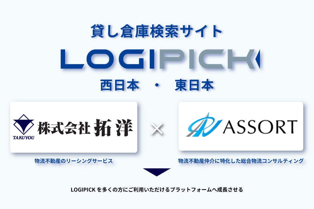 株式会社拓洋(埼玉県八潮市、代表取締役社長:鈴木裕司)と株式会社ASSORT(本社:神奈川県茅ヶ崎市、代表取締役:竹上諒英)は、貸し倉庫検索サイト「LOGIPICK」の運営に関して、業務提携を行ったことをお知らせいたします。