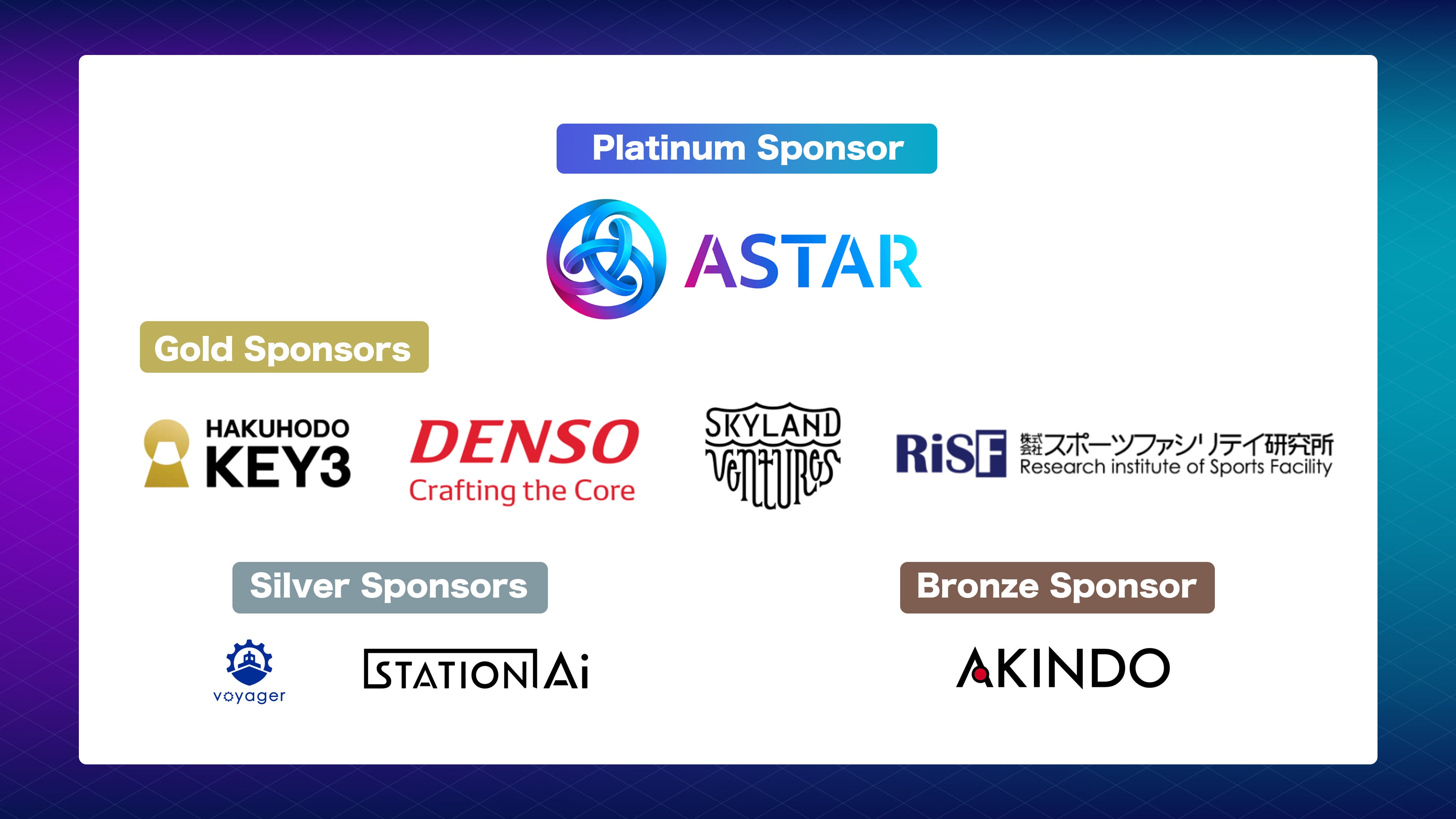 既存のスポンサー様に加え、プラチナスポンサーにAstar様、ゴールドスポンサーに株式会社博報堂キースリー様、株式会社スポーツファシリティ研究所様、シルバースポンサーに株式会社ボイジャー様にご参加いただいております。