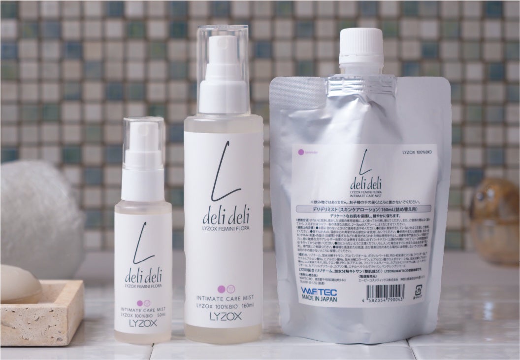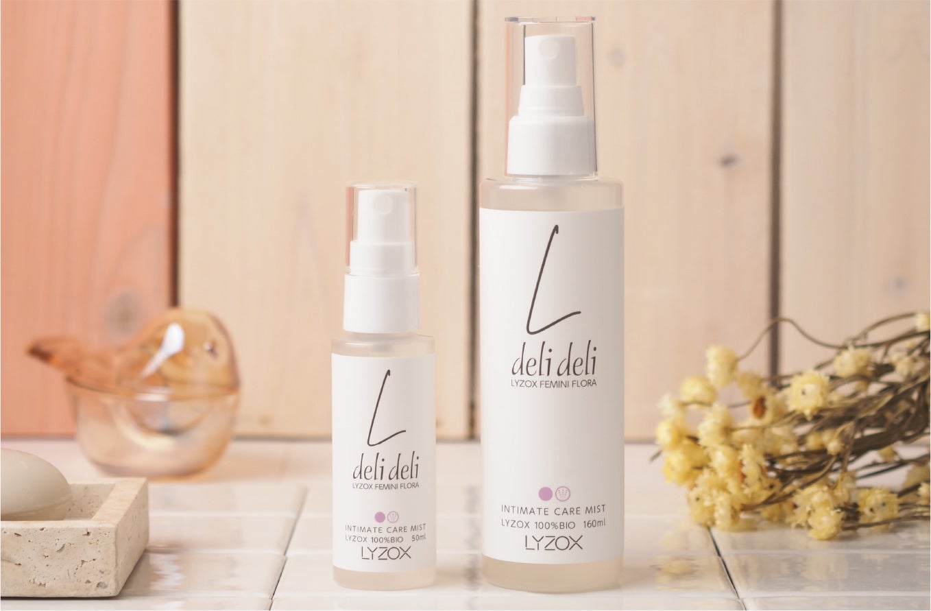 この度「deli deli」はパッケージデザインを見直し、「deli deli LYZOX FEMINI FLORA INTIMATE CARE MIST」としてリニューアルいたしました。