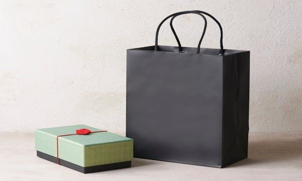 赤い水引が目を引くパッケージと手提げ袋付き(化粧箱入り2本セットのみ)