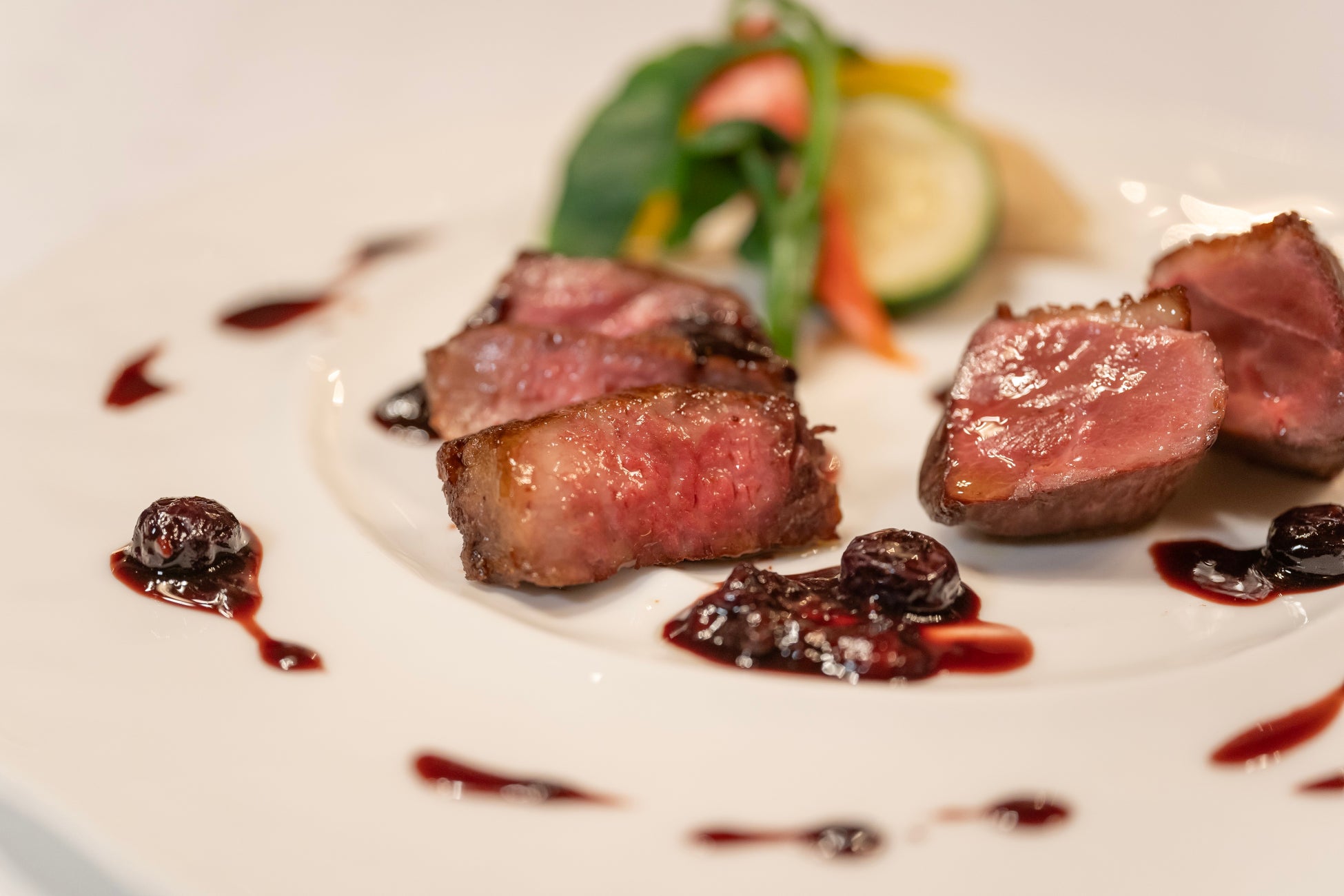 ・宮古牛サーロインのビステッカとハンガリー産鴨胸肉のロースト
