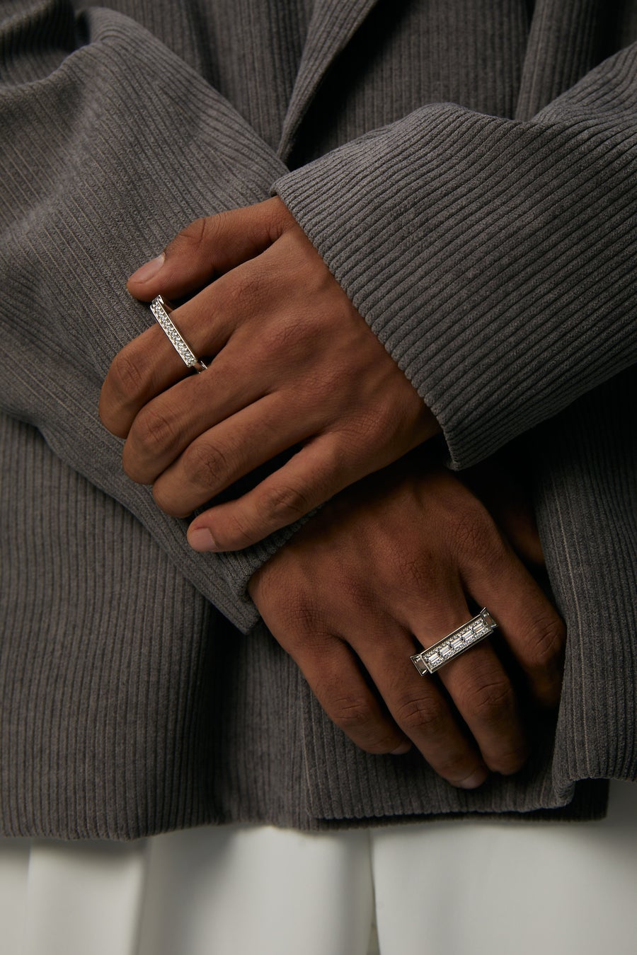 深海からインスピレーションを得た「アイ・オブ・ザ・オーシャン」リングは、スターリングシルバーのフォルムが波の流動性と深海の神秘を模しています。