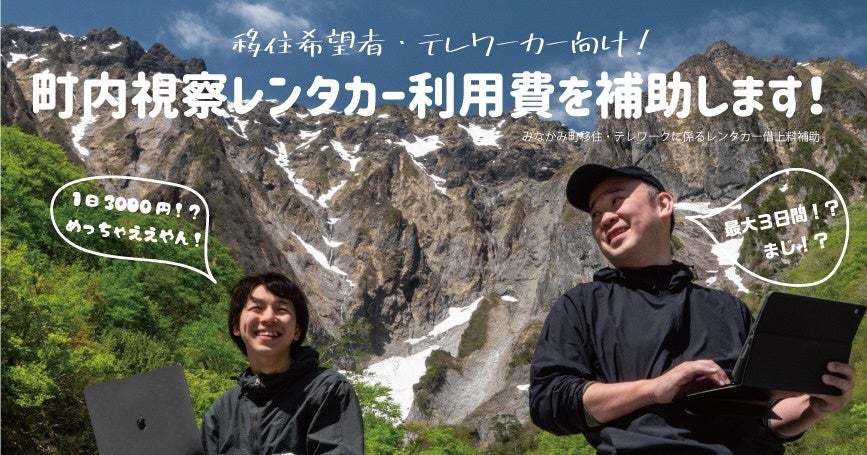 さらに、移住視察やワーケーション時のレンタカー補助や宿泊の支援体制も整備され町の空気に触れやすくする工夫や、移住後、新幹線を使用した通勤補助(定期券)、コロナ禍におけるリモートワークの普及によるスポット出勤に対応するかたちで新幹線乗車券+特急券も補助対象にいち早く取り入れました!