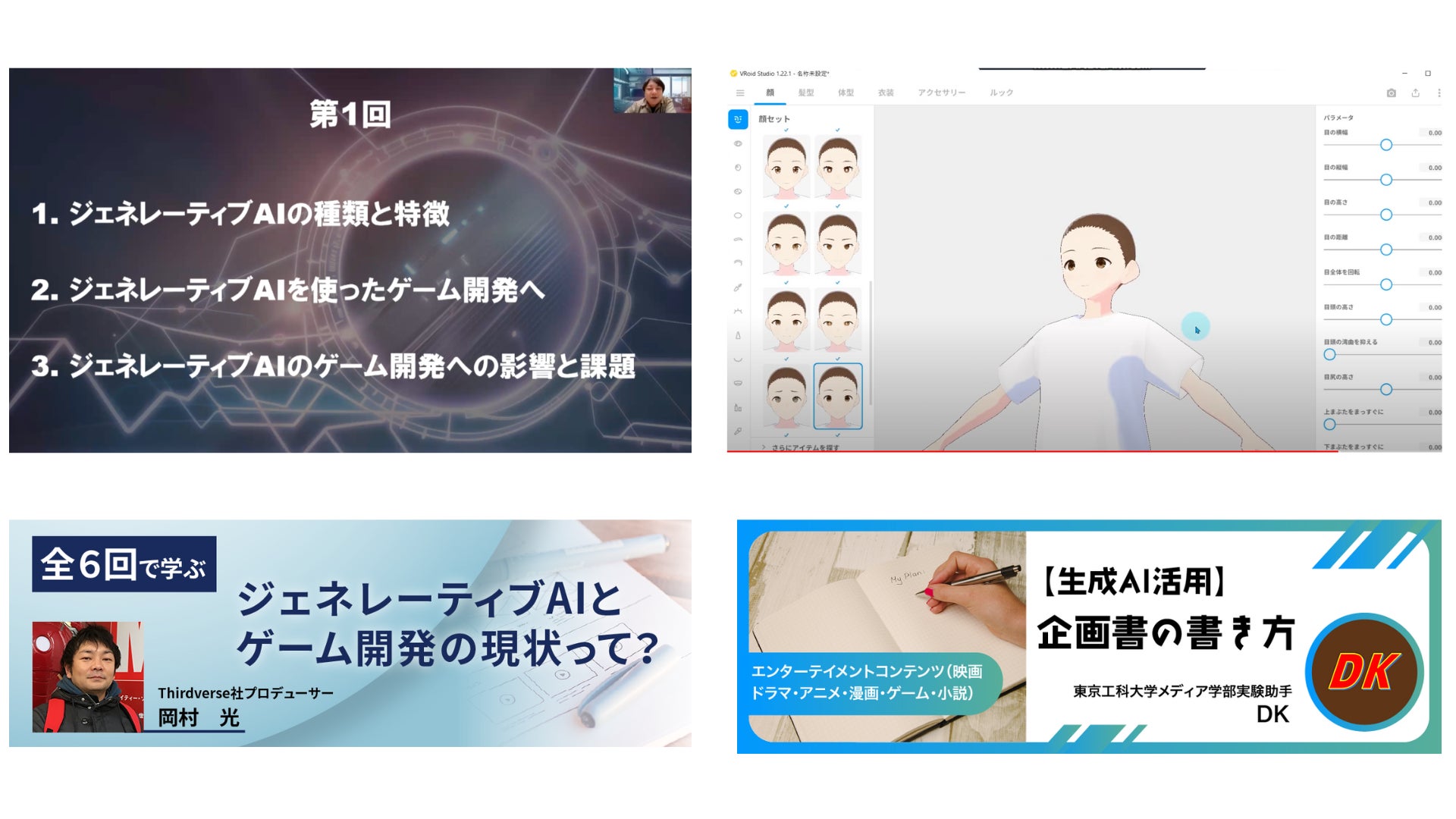 当社が厳選した、開発現場とAIの今を知り尽くした現役クリエイターや有識者が、AIの基礎から応用までをカバーしたオリジナルのカリキュラムによる教育動画コンテンツを提供します。