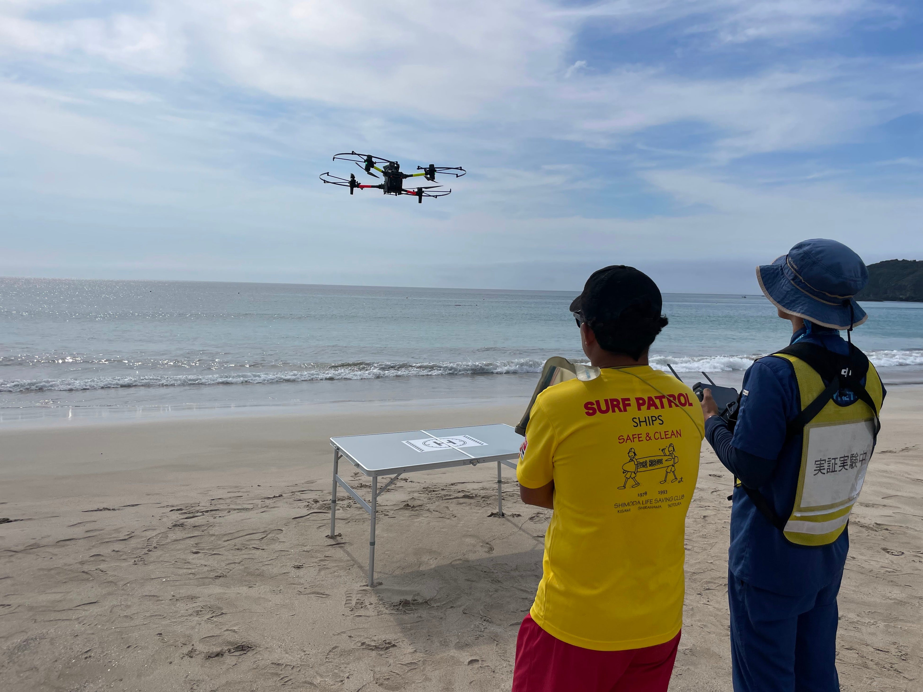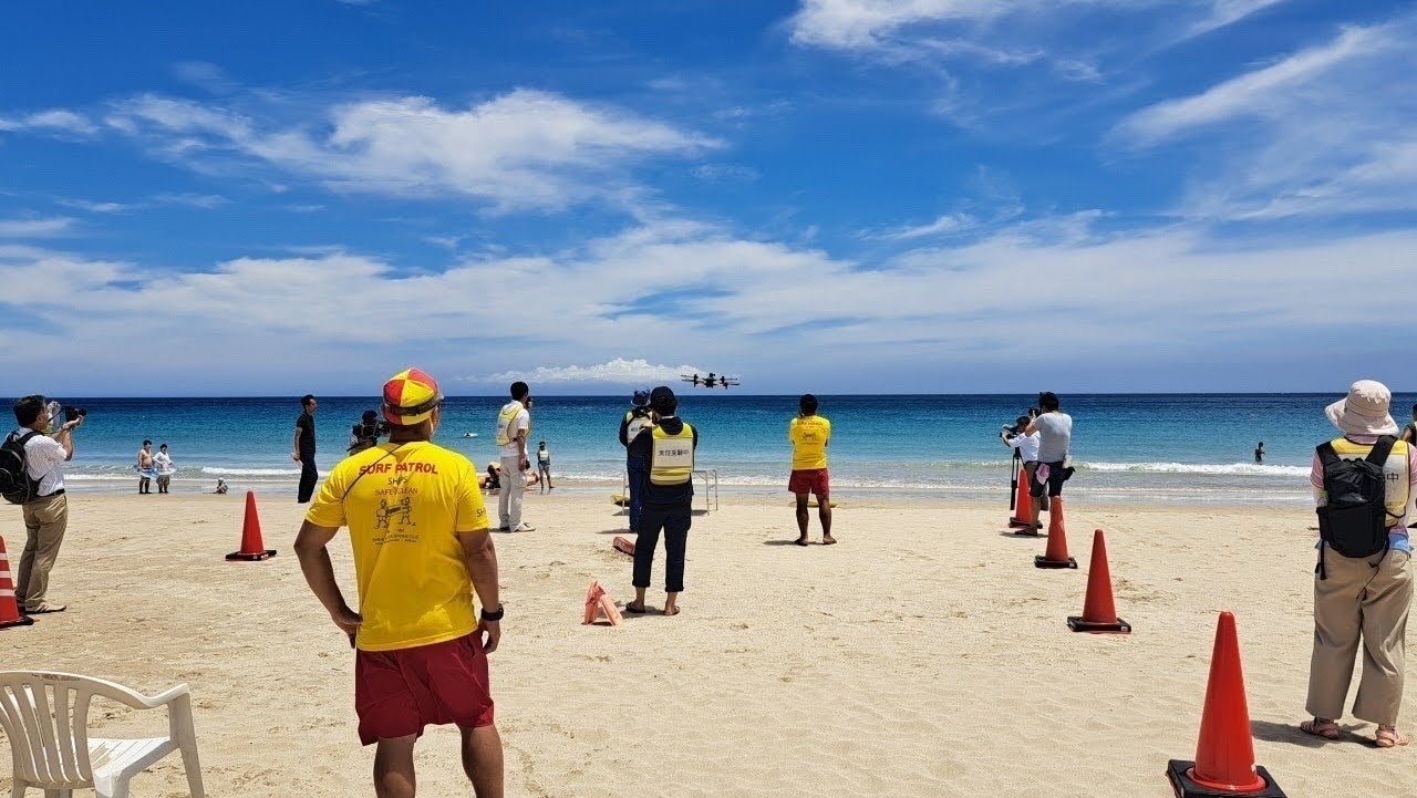『ドローンを活用した海水浴場の安全監視』の実証実験に参画、監視現場で活動するライフセーバーの目線から検証を行いました