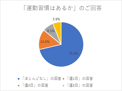 新規ご入会時にお伺いしているアンケート集計によると、ビーアップに入会される70%以上の会員様は「運動習慣がない」と回答し、「ジムに初めて通う」という方が多くいらっしゃいます。