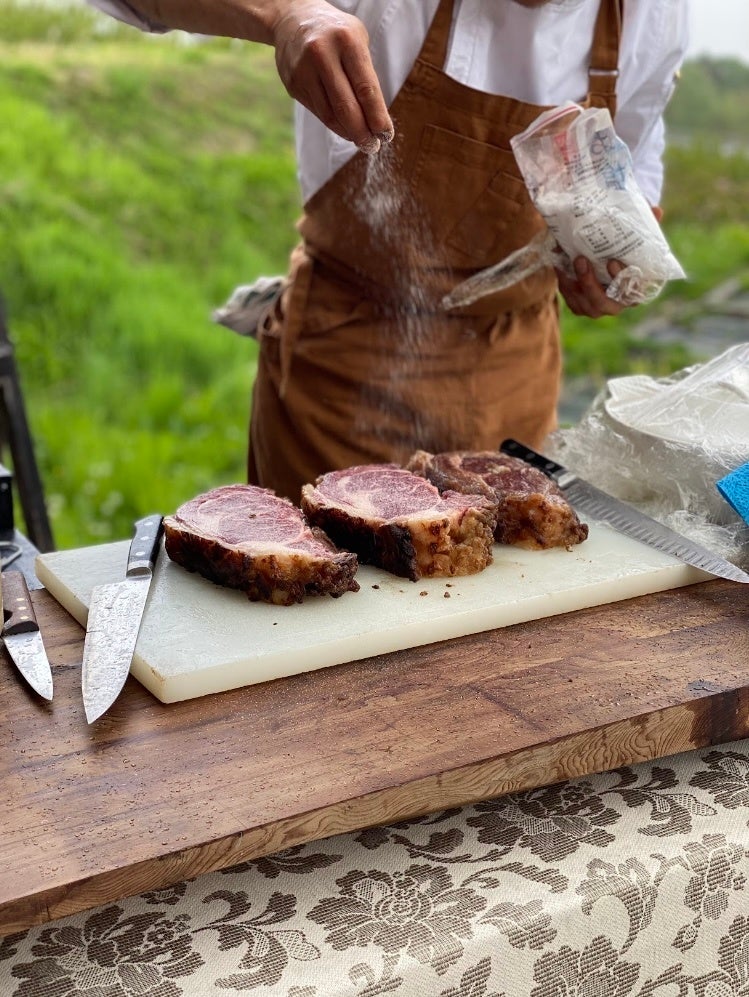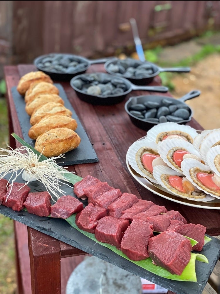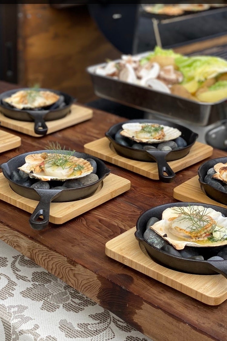 お料理は本場フランスの3つ星レストランで修行後、国内5つ星ホテルの総料理長を歴任し、また北海道の食材を知り尽くしハンターでもある飯島豪シェフ監修のフレンチスタイルの本格的BBQ料理。地産地消をテーマに厳選された旬な食材を全て使用し、メインは鹿肉のジビエ料理となります。それぞれの食材は一流のシェフ達が調理いたします。