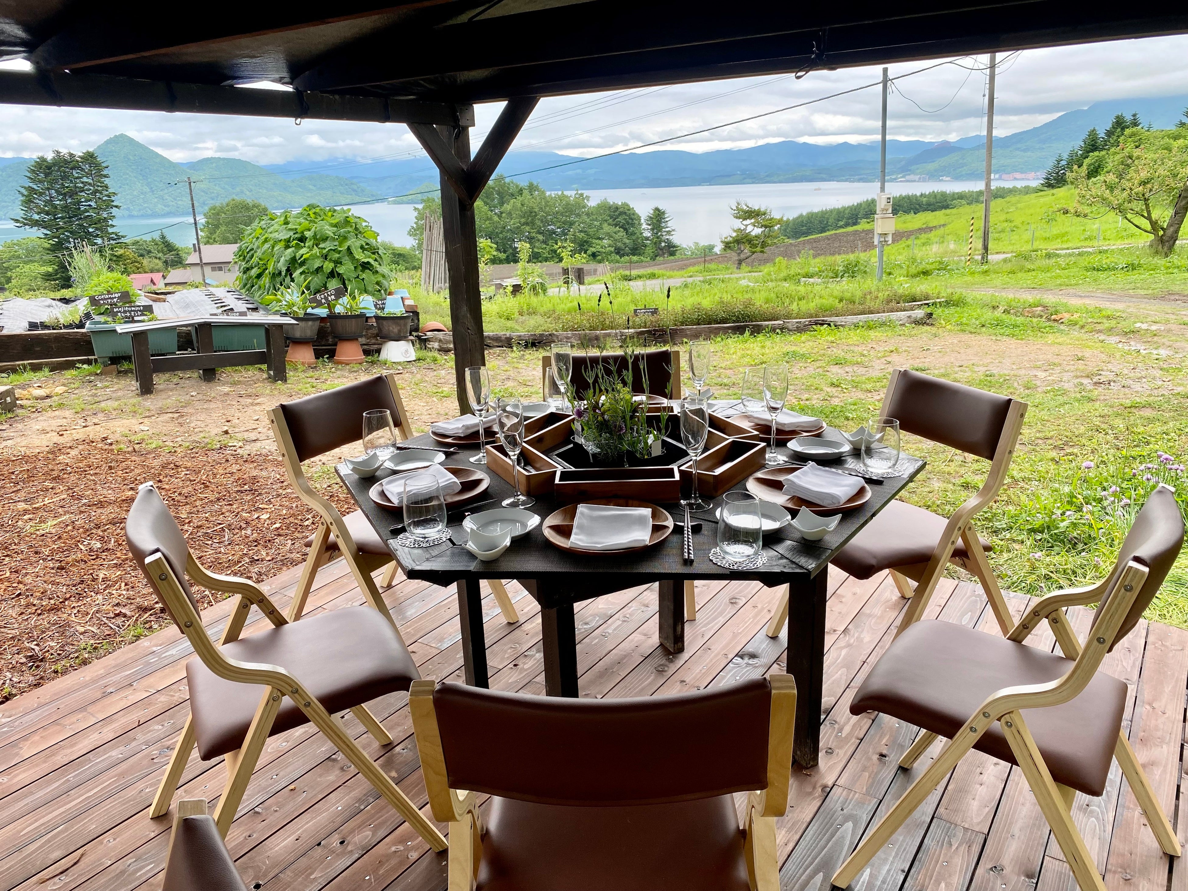 洞爺の大自然の中、農園や牧場など普段利用できない特別な場所で1日昼夜1組限定のシェフによるアウドドア・ケータリング・サービス。お食事の前後でさまざまなアウトドアのアクティビティ手配も可能です。