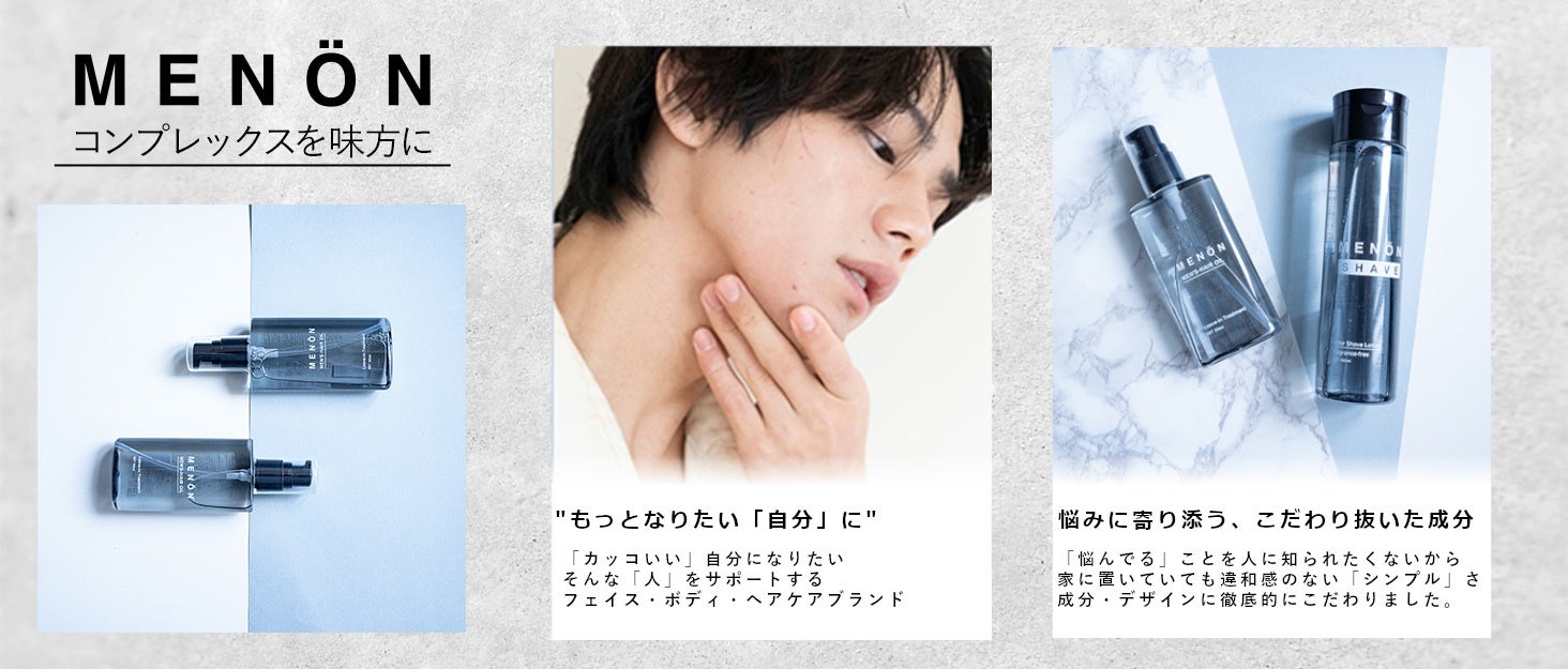 MENONは、コンプレックスを改善し、自信を持てる自分へと近づくためのサポートをするメンズコスメブランドです。家に置いても違和感のないオシャレなデザインと、毎日使いたくなる安心感を大切にしています。