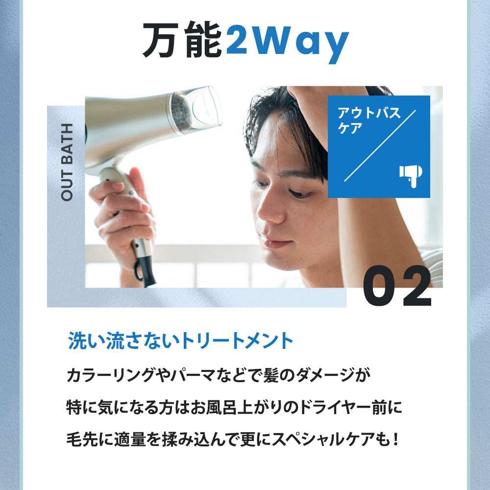 ・シャンプー後のインバス、タオルドライ後のアウトバス、どちらでも使える万能2Way仕様