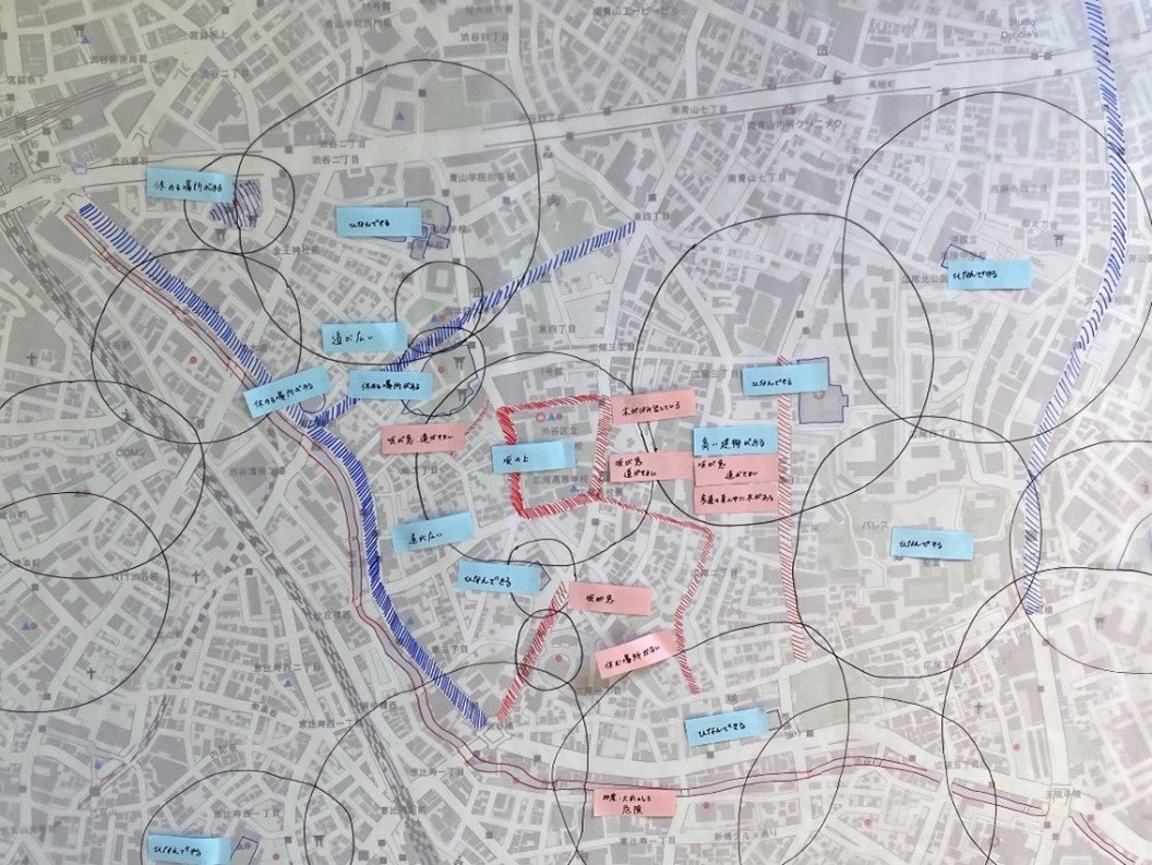 Accessibility Map(後述)を用いたワークショップを通じて、渋谷の防災に関する課題を地域の中学生やその家族と共有するとともに、今後の防災計画の策定等に資する情報収集・課題整理を目的としています。