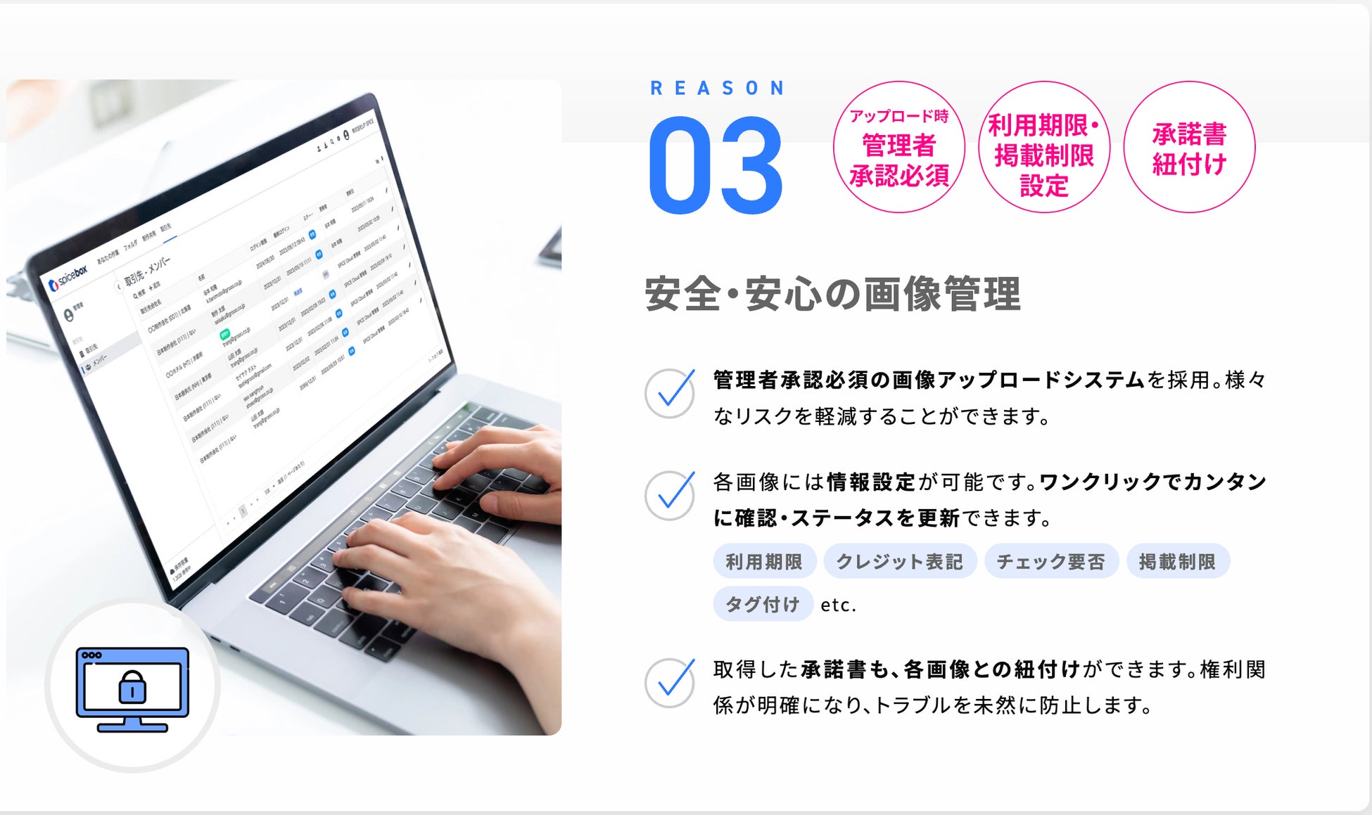 また、各ファイルに許諾書を紐付けることで、権利関係の確認も簡単になります。