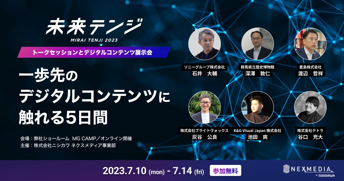 【7/10(月)〜7/14(金) 開催|無料イベント】 様々な企業とデジタルコンテンツの可能性について考える「未来テンジ2023」を開催します。