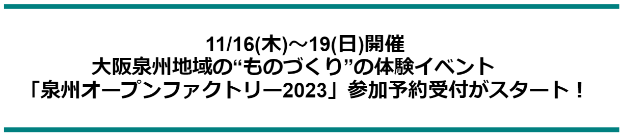 11/16(木)~19(日)開催!大阪泉州地域の“ものづくり”の体験イベント「泉州オープンファクトリー2023」参加予約受付がスタート!