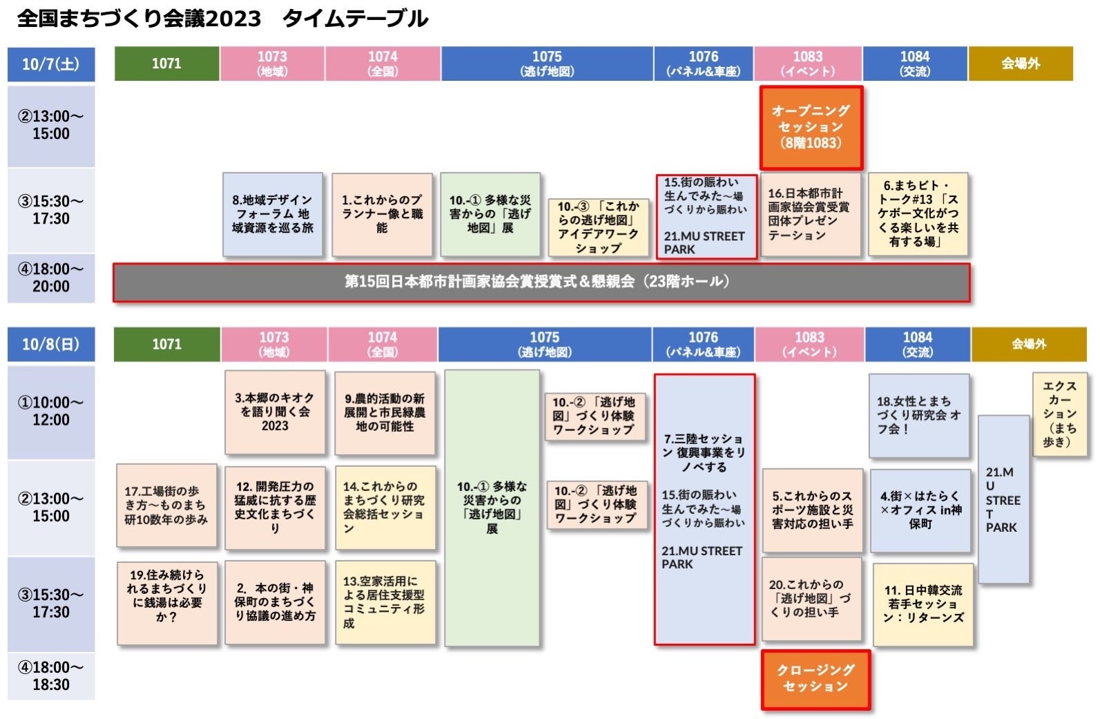 全国まちづくり会議2023in 東京ちよだ、全21セッションが決定。プランナーの職能から災害対応の担い手、スポーツ施設や市民緑農地、銭湯や工場街、女性、働き方など様々な視点からまちづくりを考える2日間