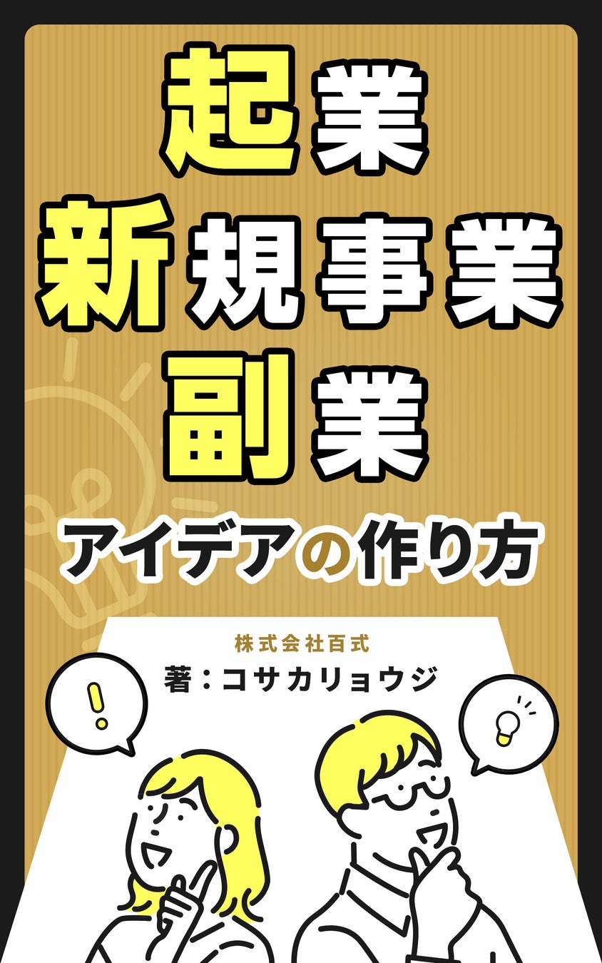 私たちは起業や新規事業、副業のアイデアが思いつかない顧客を解決するために革新的なガイドブック「起業・新規事業・副業アイデアの作り方」を作成しました。本書はあなたが直面する課題に対してクリエイティブな解決策を見つける手助けとなるために執筆しました。
