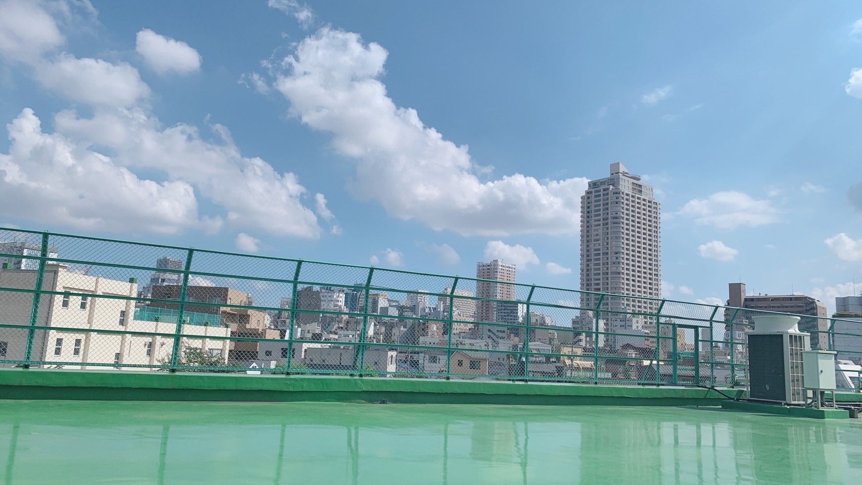 広々とした屋上空間で、床はきれいなグリーンとなります。