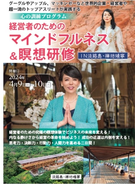 日本経営開発協会/関西経営管理協会が、「GAFAなど世界のトップ企業が実践する瞑想研修」を、2024年4月9日(火)~4月10日(水)に、淡路島 禅坊靖寧にて開催致します!