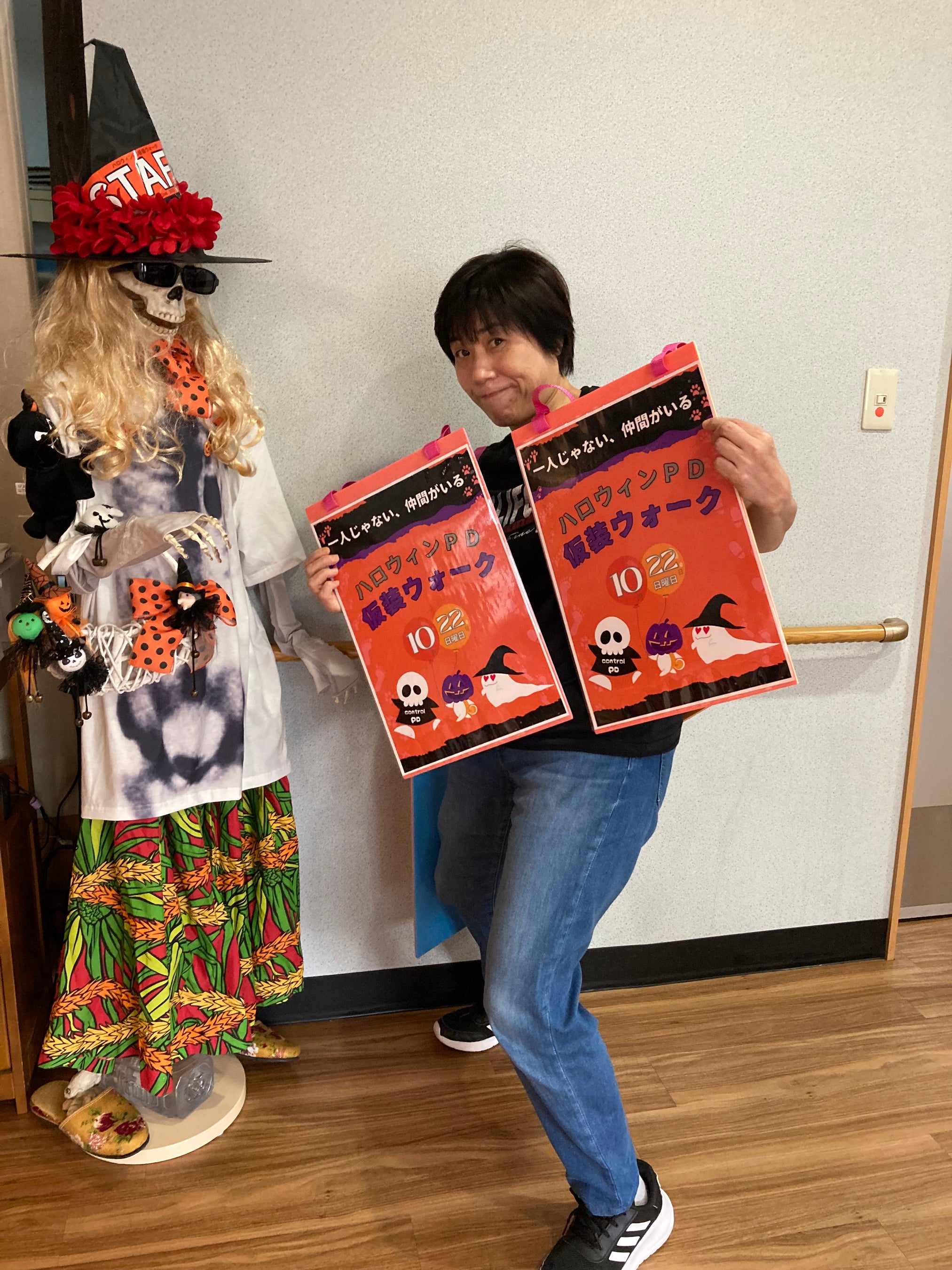 今回のハロウィンPD仮装ウォークでは、パーキンソン病の当事者やご家族が、社会から孤立しないこと、診断に時間がかかるパーキンソン病の早期受診の為の啓発を目的としています。