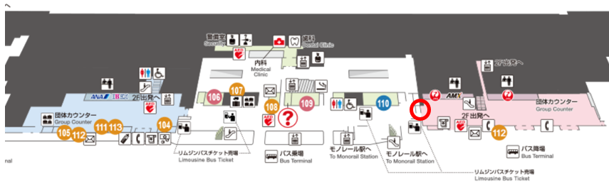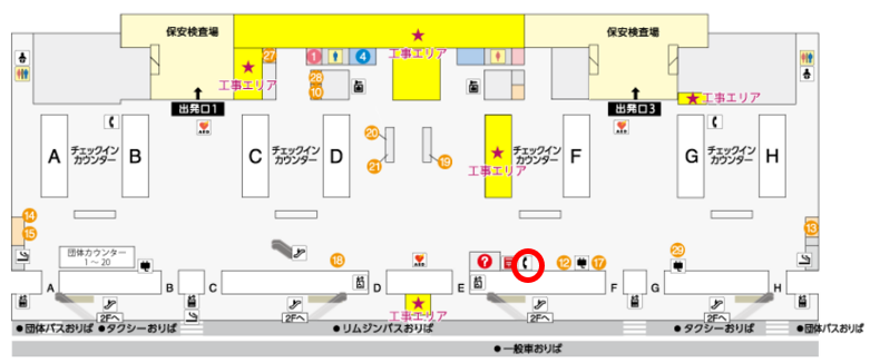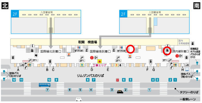 第1ターミナルビル1F 国際線・国内線到着階2カ所