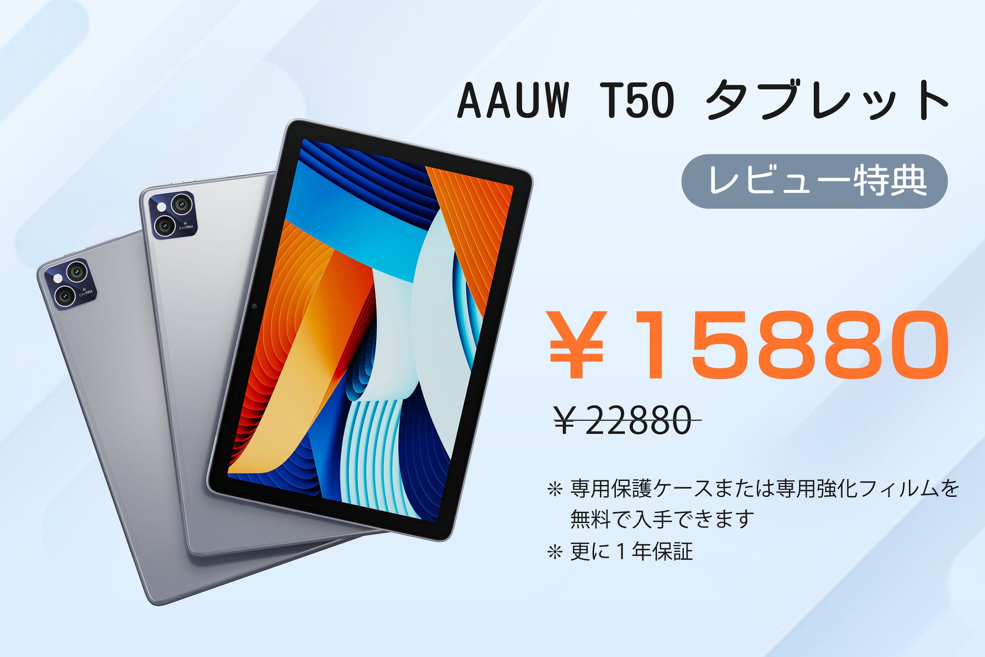AAUWタブレットT50をレビューすると、無料の専用保護ケースまたは専用強化フィルムを入手できます。更に1年保証追加。2023/6/20(火)~7/2(日) 23:59まで
