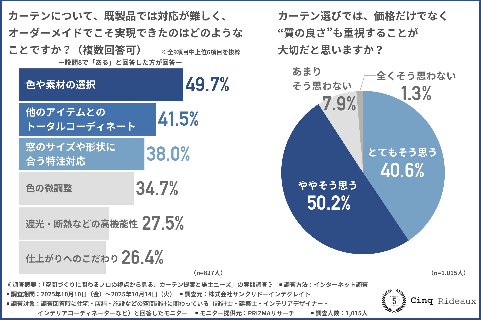 加えて、カーテン選びでは約9割が「価格だけでなく質の良さも重視すべき」と回答しており、空間設計のプロの目から見てもカーテンの質が重要であることが示されました。