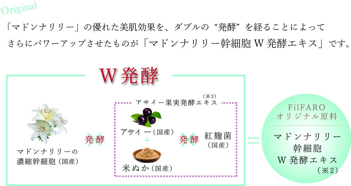 3つの巡り・整うアプローチ②:FilFAROオリジナル美容成分「マドンナリリー幹細胞W発酵エキス