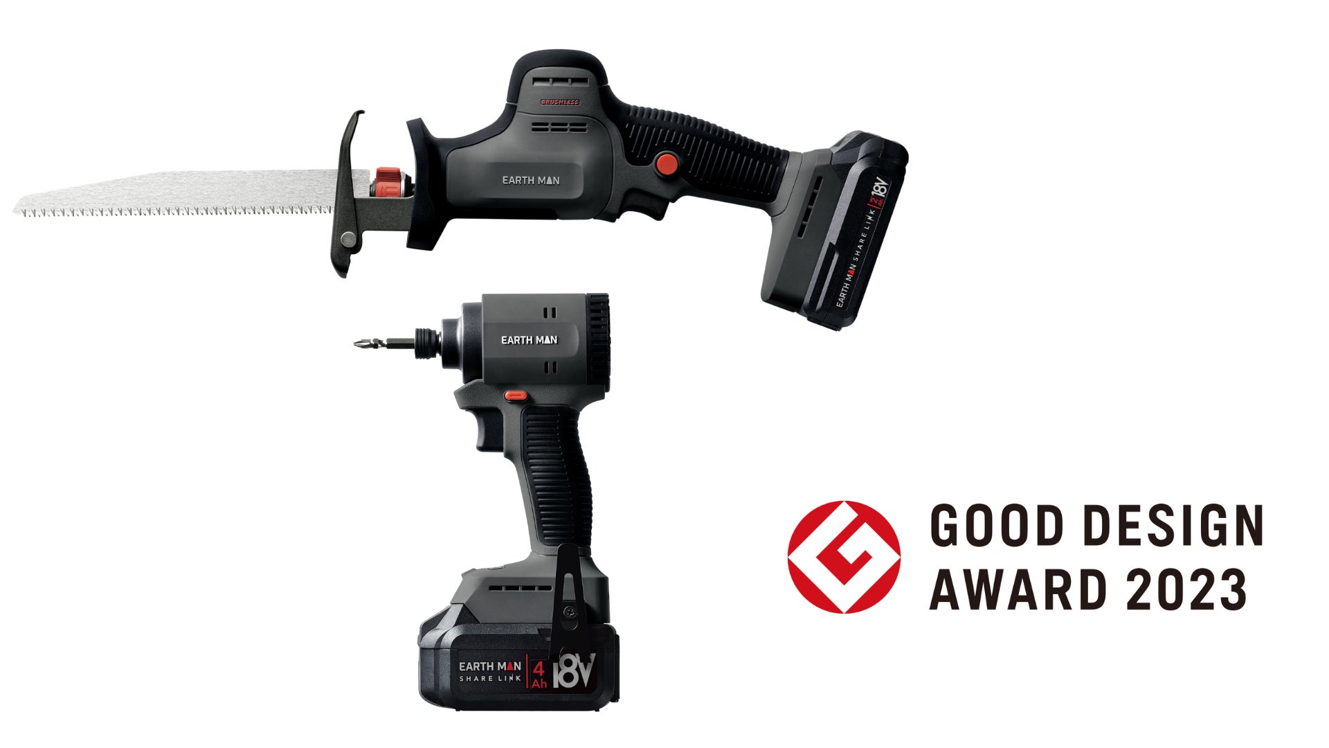 このたび2023年度グッドデザイン賞(主催:公益財団法人日本デザイン振興会)を、株式会社高儀の電動工具「EARTH MAN SHARELINK18V充電式ブラシレスインパクトドライバー」と「EARTH MAN SHARELINK18V充電式ブラシレスコンパクトセーバーソー」が受賞しました。