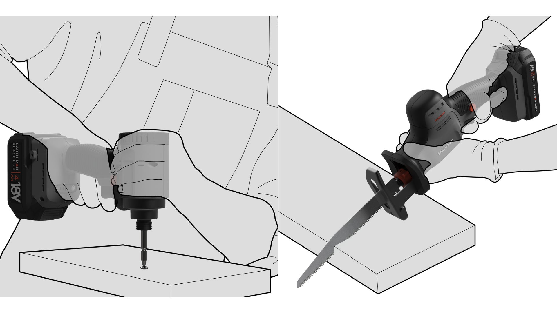 約30年以上に渡り国内の大工工具市場で、プロの職人からDIYユースまで幅広い人々が手に取れる道具を目指して展開をしてきた「EARTH MAN」ブランド。当ブランドより、約5年ぶりに電動工具シリーズを刷新し誕生したのが「SHARE LINKシリーズ」です。今回受賞した2製品は、新シリーズの中でもアイコンとなるプロダクトで、シリーズコンセプトを体現するデザインとなっています。