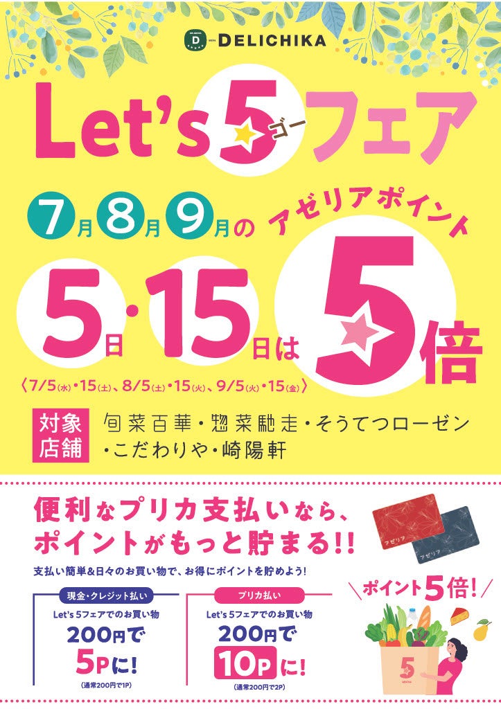 期間中、DELICHIKA(デリチカ)ゾーンにある食物販テナント「旬菜百華(※2)」や「惣菜馳走(※3)」「そうてつローゼン」「崎陽軒」「こだわりや」でのお買い物で、アゼリアカードポイント5倍プレゼントいたします。対象店舗はPOPが掲示されております。