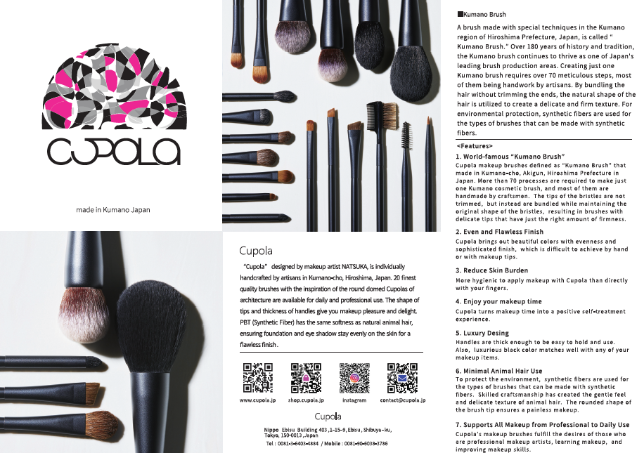 【熊野筆メイクアップブラシ】熟練の職人よる穂先の柔らかさと機能性。プロのアーティストがプロデュースした、伝統と革新が融合、洗練されたデザインのCupolaを世界中の人へ届けたい。