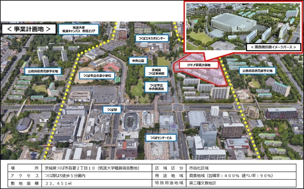 1.大学債発行によって調達した資金(200億円)等を活用し、ITF.F施設を筑波大学が建設