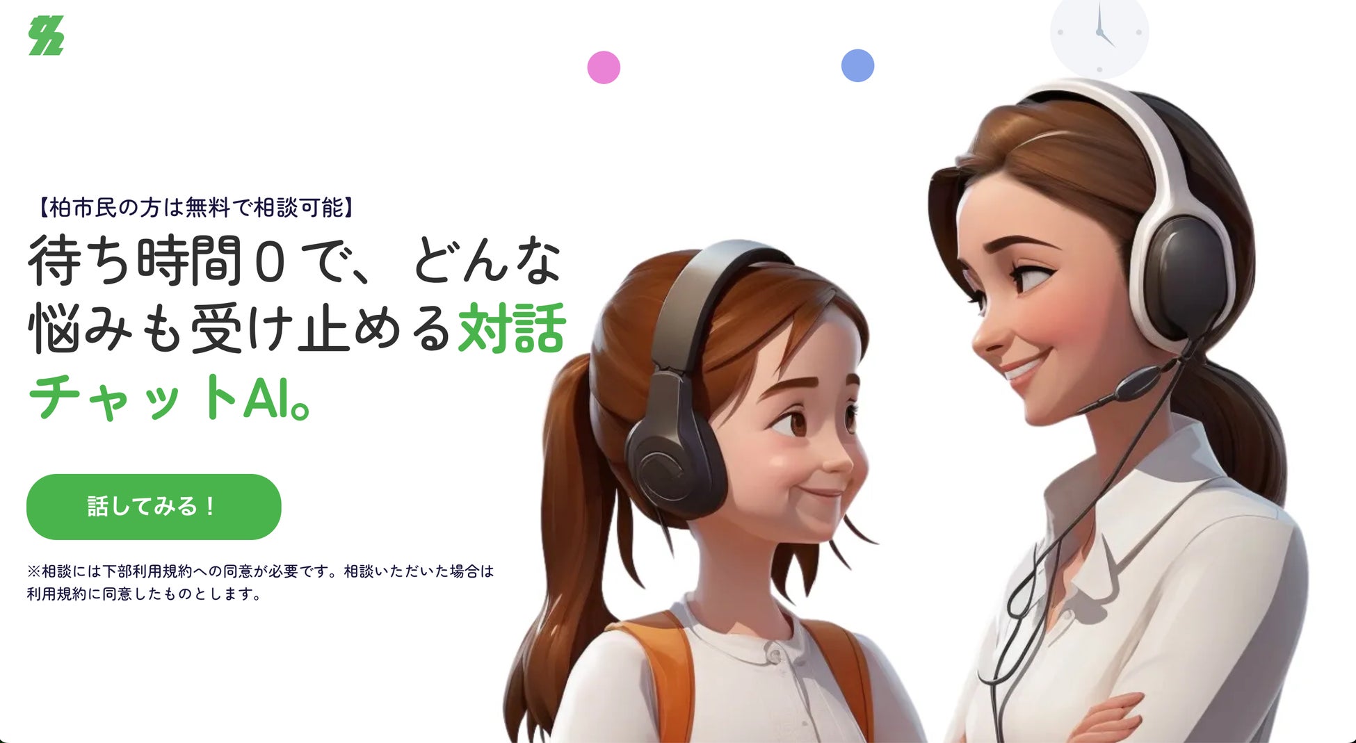 千葉県柏市で実施されたAI悩みチャット相談が、3ヶ月間で計2,348相談に対応し、平均満足度82.5%を記録。