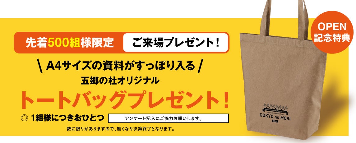 先着500組様に五郷の杜オリジナルトートバッグをプレゼントいたします。