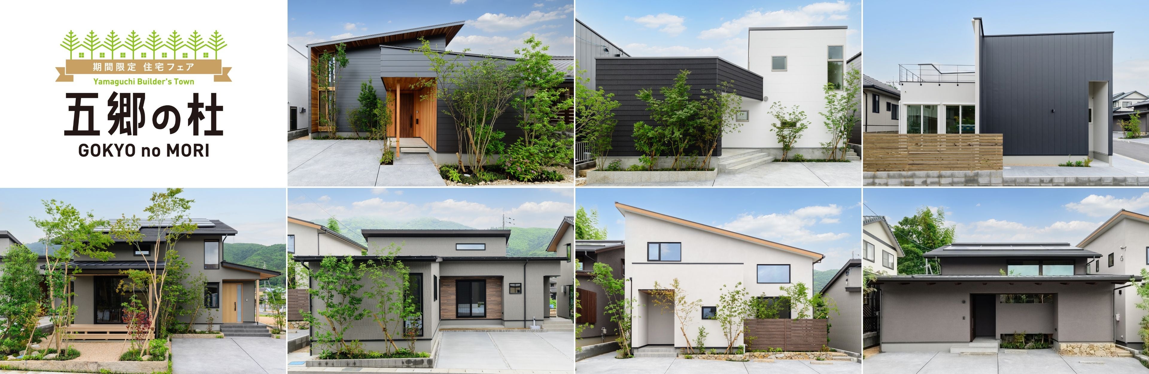 山口県の地元工務店7社が共同運営する期間限定の住宅フェア「五郷の杜」が新しく誕生しました。山口県ビルダーズネットワークに加盟する「株式会社銘建」(防府市)、「建和住宅株式会社」(下関市)、「安本建設株式会社」(岩国市)、「株式会社原工務店」(防府市)、「田中建設株式会社(タナカホームズ)」(萩市)、「長崎建設株式会社」(周南市)、「株式会社安成工務店」(下関市)の 7 社が力を合わせ、各社の特色と技術力を活かした建物全7棟をご案内します。