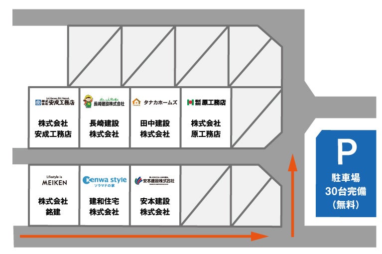 ・出展住宅メーカー:株式会社銘建・建和住宅株式会社・安本建設株式会社・株式会社原工務店・タナカホームズ・長崎建設株式会社・株式会社安成工務店