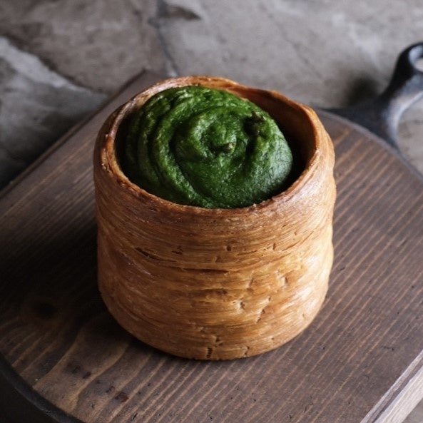 冬にしか味わえない群馬産の縮みほうれん草の甘味と鮮やかな天然カラーを活かしたお食事系フラン。ゲランドの塩と隠し味のターメリックで素材の魅力を引き立てます。