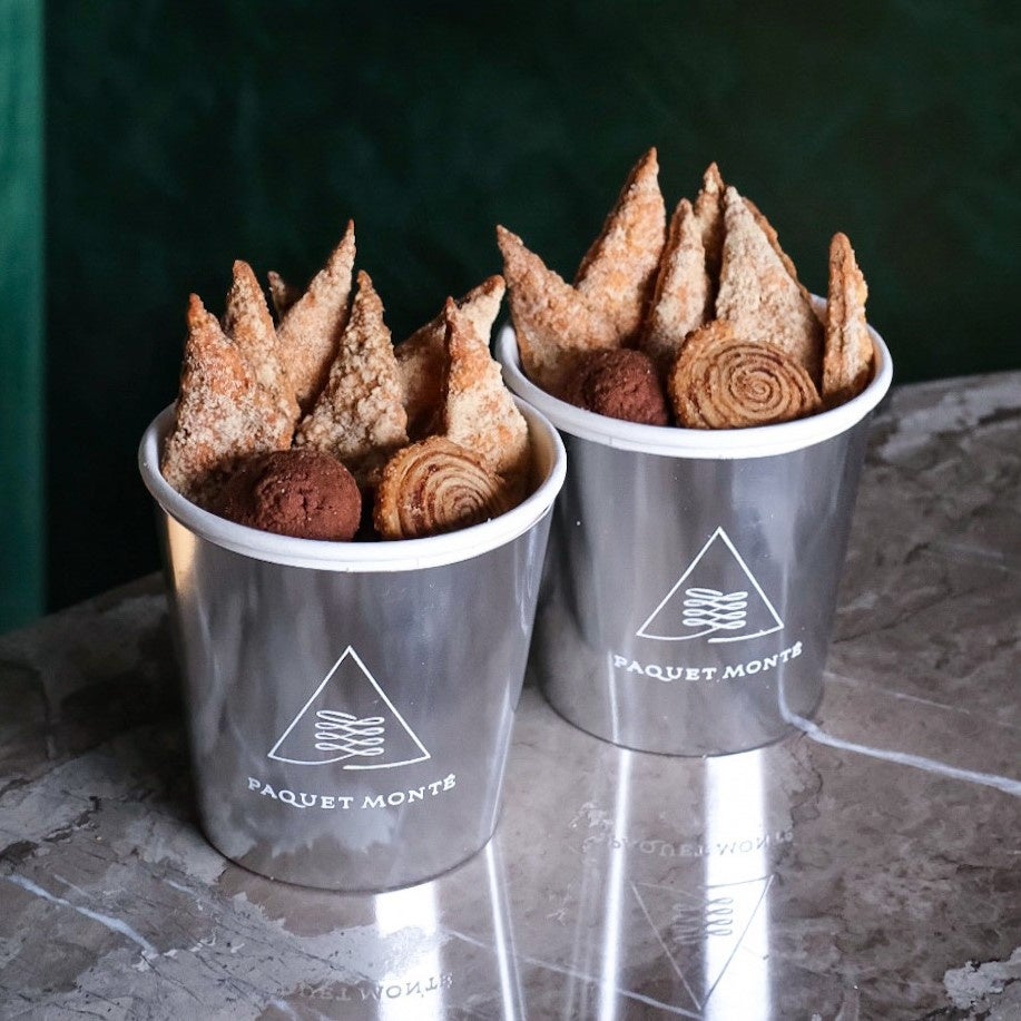 パルミエ パイ・米粉ショコラ サブレ・チーズ クラッカーの3種を持ち歩き用にオリジナルカップに詰め合わせました。お散歩のお供や少しずつお試しにも。