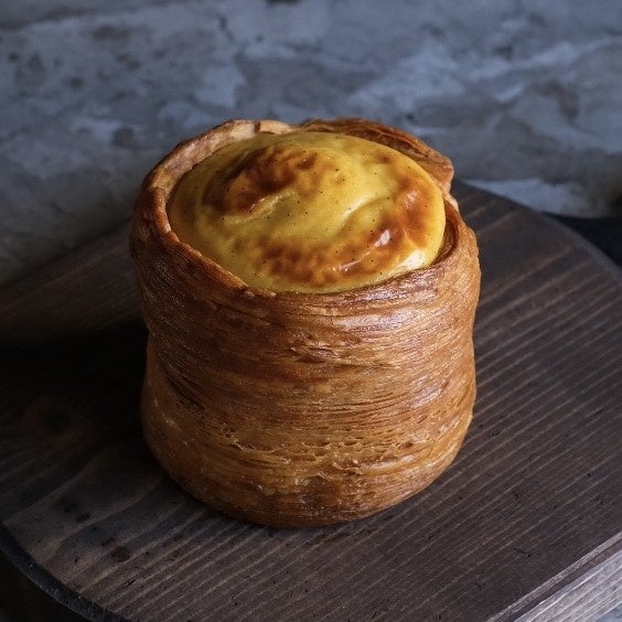 京都の朝日製粉所さんの粉を使用し、他に類を見ない画期的な米粉100%のパイを開発。底には香ばしい玄米粉100%のガレット生地を敷き、定番の香り高いバニラのフラン生地を流し込んで焼くグルテンフリーのフランを限定で発売します。