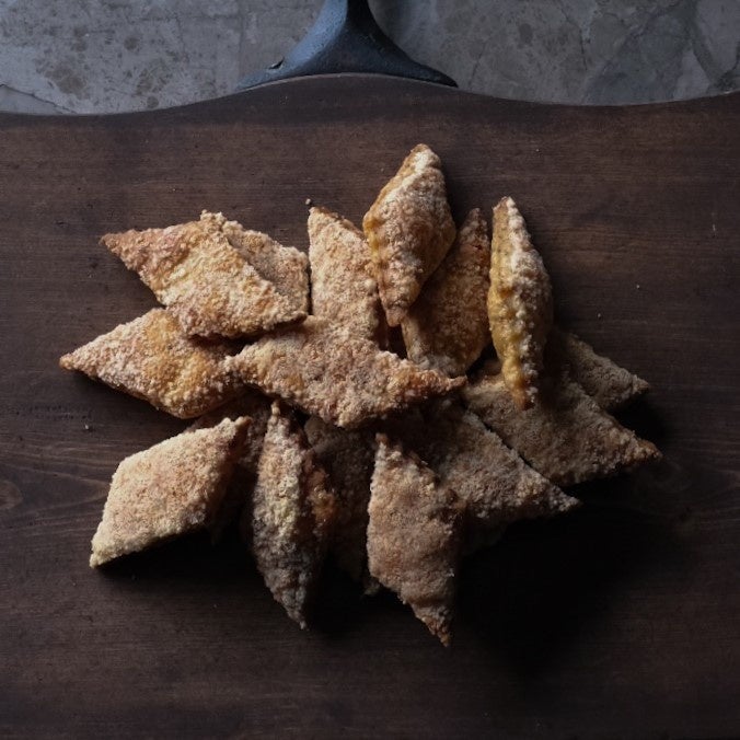 フランの底生地にイタリア産グラナパダーノチーズ・シチリア産のドライオレガノを混ぜ込みおつまみとしてもお楽しみいただける甘くない焼き菓子です。パケモンテ包みでお渡しします。