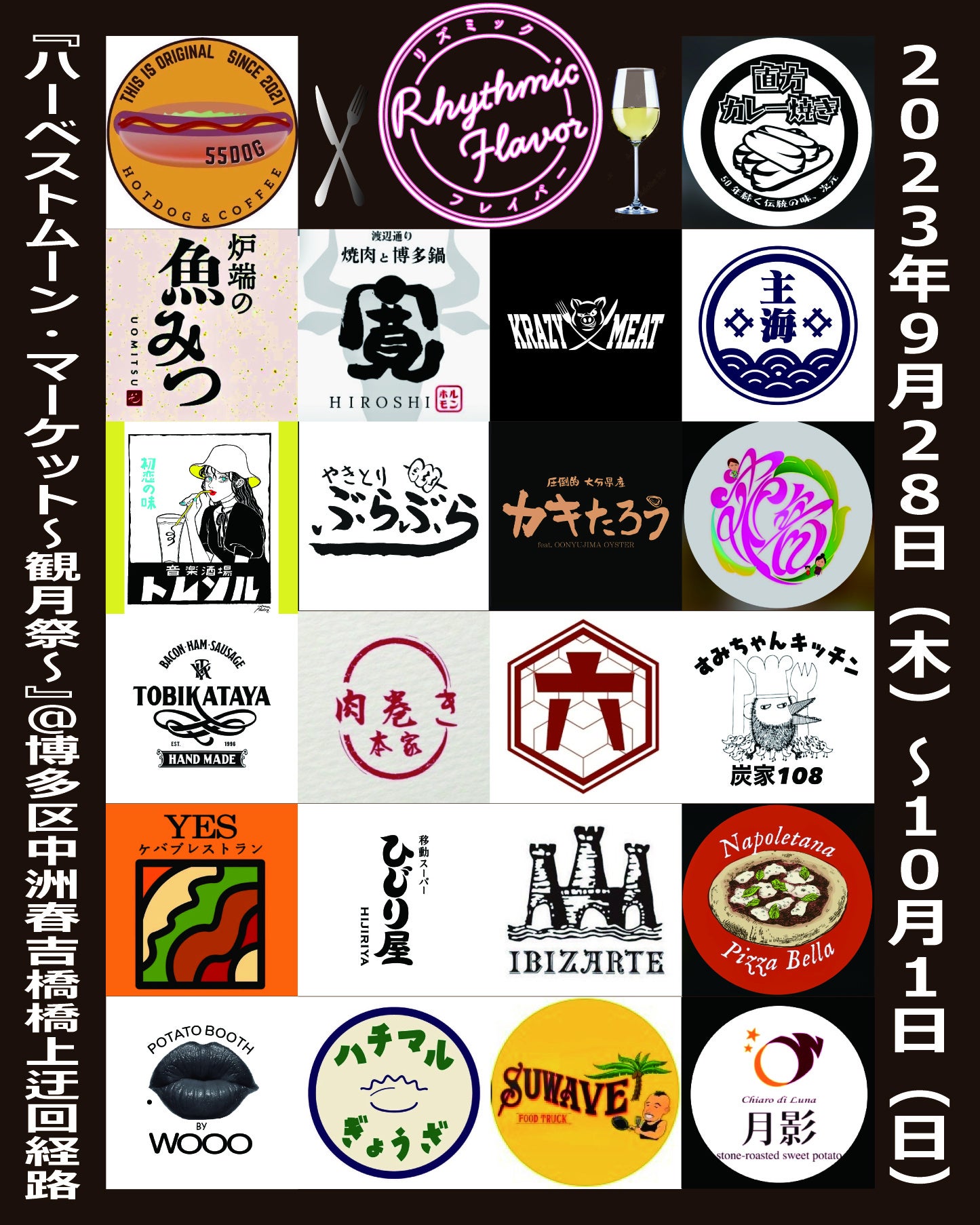 〇出店舗情報:スペイン料理『IBIZARTE』, 音楽酒場『TRESOL』, 『KRAZY×MEAT』, 『炉端割烹 主海』, 『焼肉と博多鍋 寛』, 台湾茶専門店『花音』, 大分大入島産蒸し牡蠣『カキたろう』, 肉巻きおにぎり専門店『肉巻き本家』, 『炉端の魚みつ』, 『焼鳥 ぶらぶら』, ハンドメイド・ソーセージ『TOBIKITAYA』, 『大衆中華酒場 六根』, 大阪鶴橋の本格キムチ『移動スーパーひじり屋』, 『唐揚げ&カレー焼き 次元』, 『炭家 108』, ケバブ専門店『YES』, ホットドッグ専門『55DOG』, 餃子専門キッチンカー『ハチマルぎょうざ』, ピザ専門キッチンカー『Napoletana Pizza Bella』, フライドポテト専門キッチンカー『POTATO BOOTH by WOOO』『SUWAVE』, 焼き芋専門キッチンカー『福岡焼き芋屋 月影』他を予定しています。