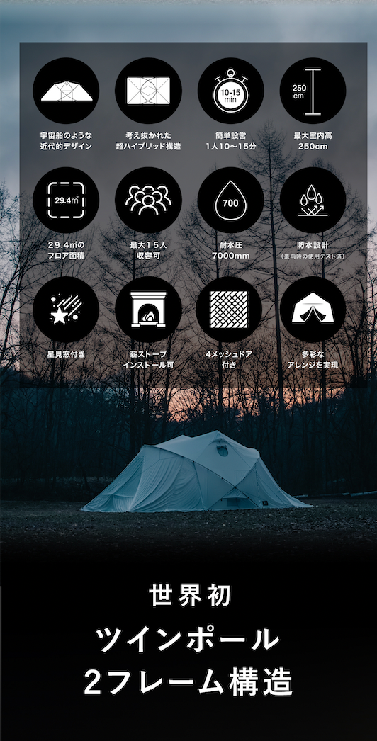 【世界初、日本×韓国発】ツインポール×ドーム型シェルター 「Agamemnon(アガメムノン)」爆誕!