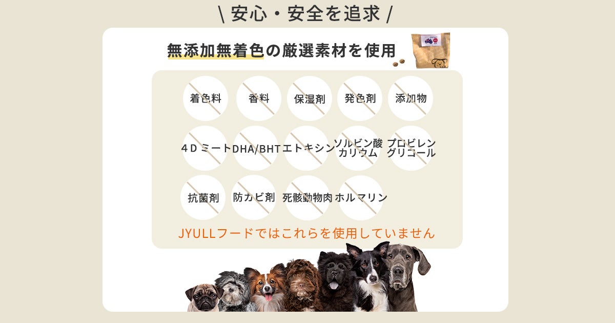 JYULL FOOD(ジュールフード)はそんな想いから、毎日のごはんで愛犬の健康づくりをサポートするために生まれたドッグフードです。