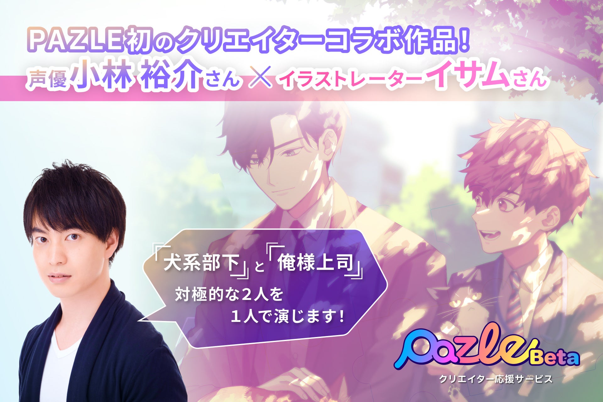 PAZLEにおける初の異職種間コラボレーション作品として、声優の小林裕介さんとイラストレーターのイサムさんがタッグを組んだボイスドラマを公開いたします。小林裕介さんは一人二役を演じ、3話構成のBL(ボーイズラブ)ストーリーを展開します。