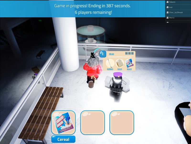 プレイヤーは架空のショッピングモールで、1人がうしねこちゃんとなって他のプレイヤーを追い、逃げるプレイヤーたちはうしねこちゃんに捕まらないよう、巧妙にショッピングモールからの脱出を図ります。そのためには脱出を手引する警備員にアイテムを渡す必要があり、プレイヤーは立ち並ぶ様々な商店からアイテムを探し出して目的を達成することが求められます。