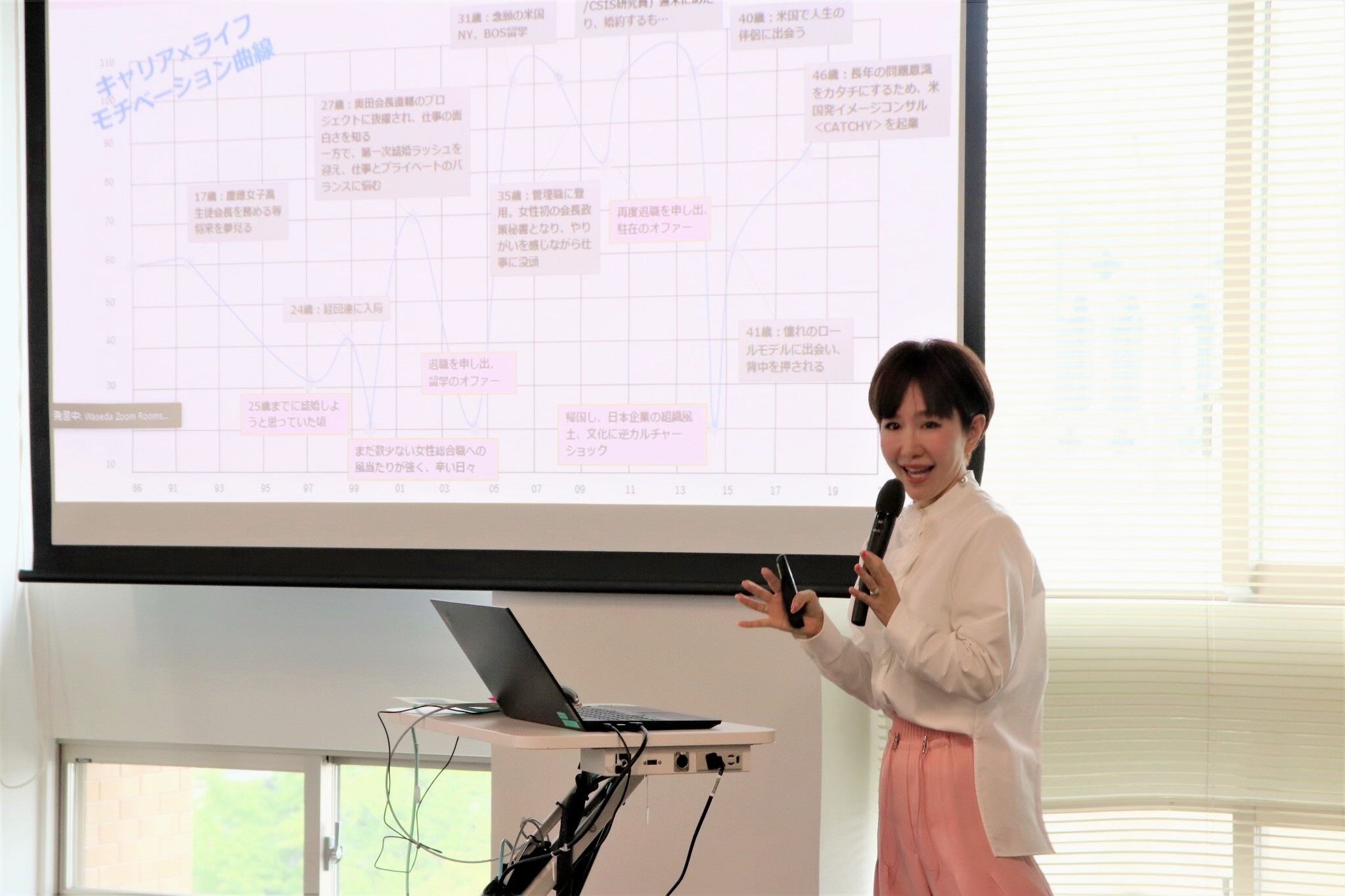 「先輩方が切り拓いてくださったおかげで、私の頃は総合職への道は確立されていました。ただ、まだ数は少なく、『交渉窓口は男性に代わってくれますか?』と言われたこともありました(苦笑)。その一方で、女性は覚えてもらいやすいという利点もありましたので、余計なことは気にせず、やるべきことをやろうと思って取り組んできました。自分なりの正義や問題意識を持って取り組んでいると、性別にかかわらず、チャンスを与えてくれたり導いてくださったり背中を押してくれる人が現れるということ。私はそういうメンターともいうべき方々との出会いによって、留学や海外駐在をはじめやりたいことを実現できてきたと思います。また、私の人生にとって、海外経験はかけがえのない財産。ここで得られた国際感覚からも、これからは個性の時代であり、日本の政財界トップや次世代リーダー達も、唯一無二の印象を残せる存在になっていく必要性を痛感し、米国発イメージコンサルティングを起業しました。これまでのキャリアは全て、自分の感性を信じてアクションに移してきたといえます。」