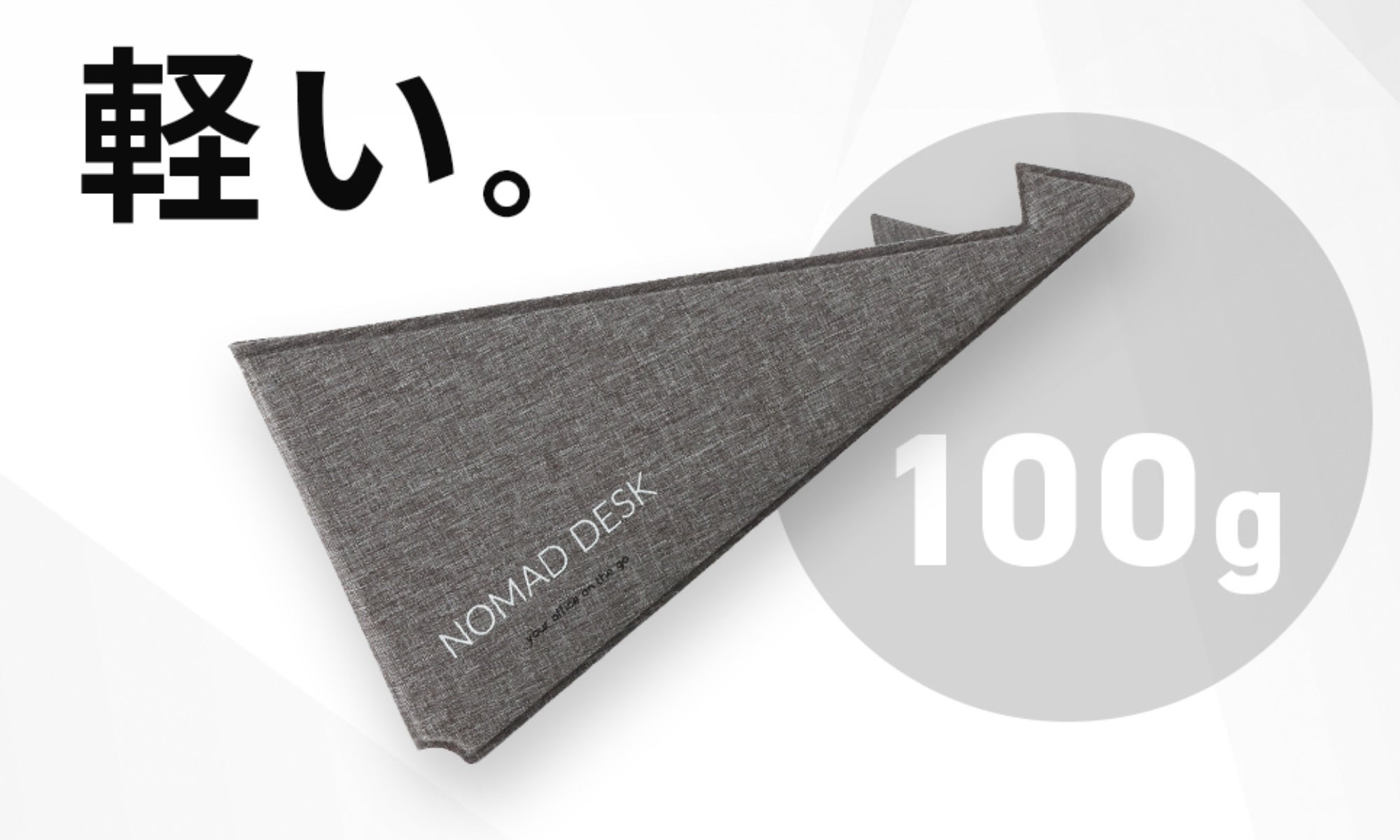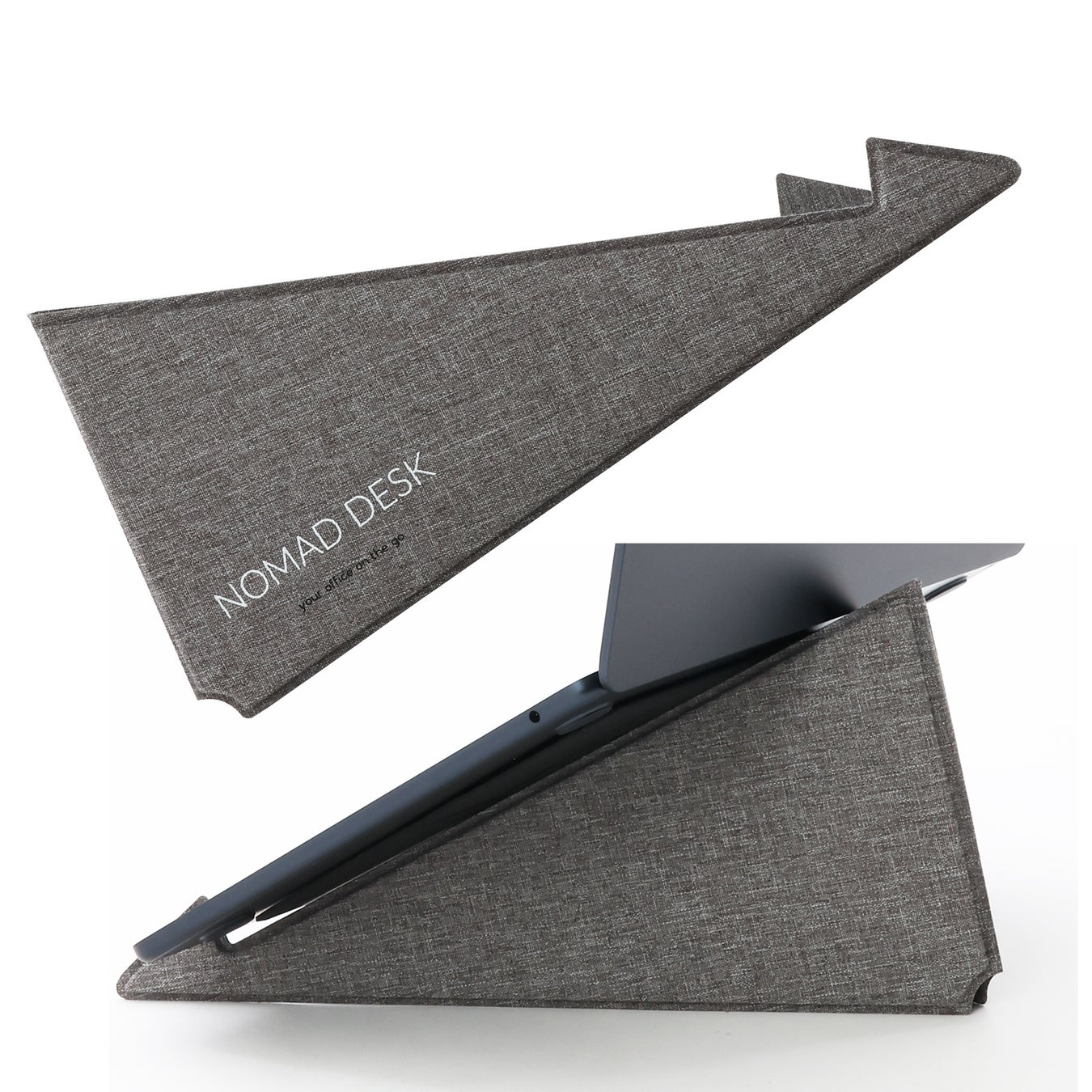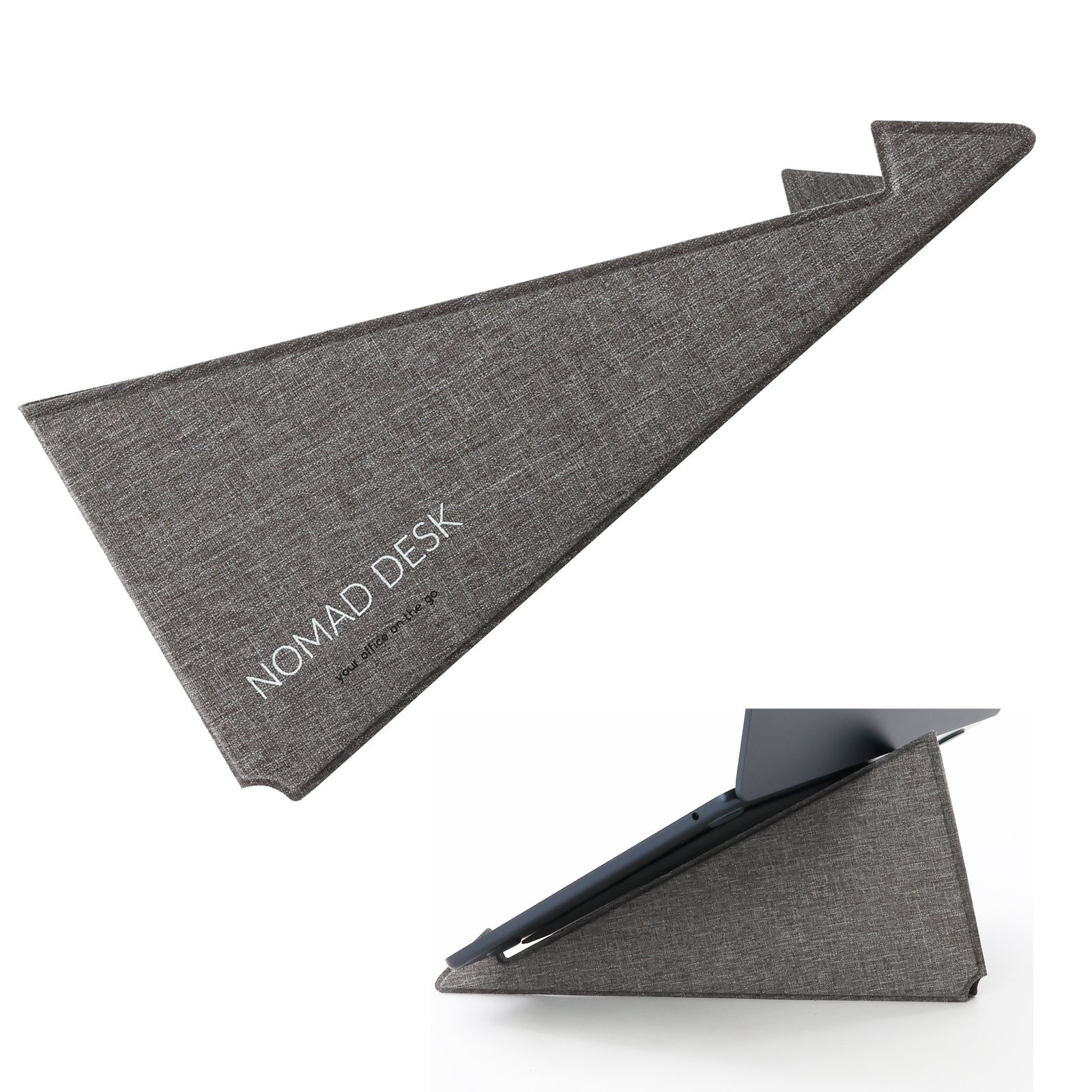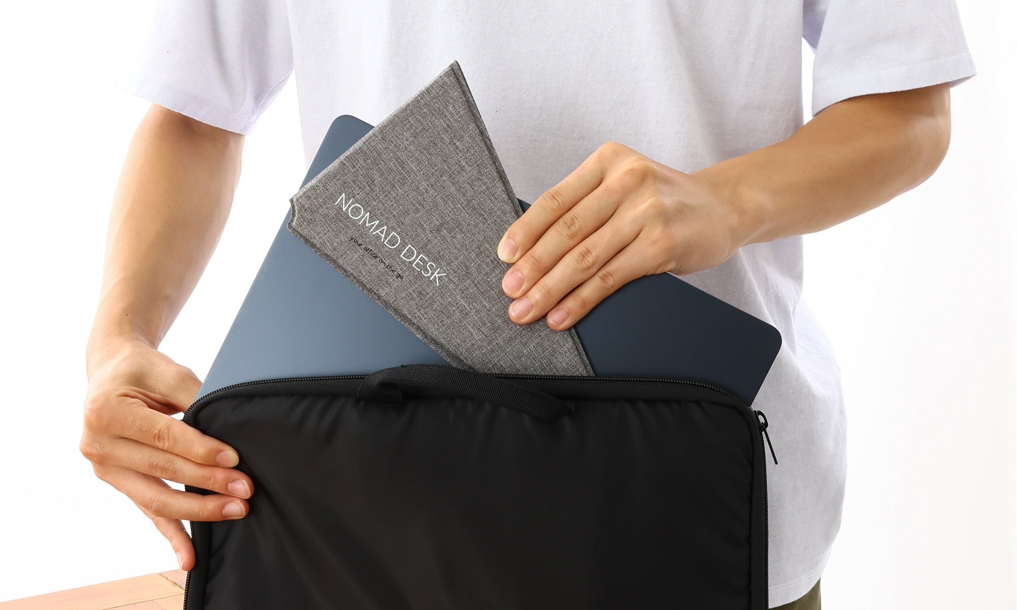 デスクアクセサリーブランド『NOMAD DESK』を展開するノマドデスク(東京都渋谷区)は、ノートパソコンスタンド「NOMAD STAND FOLD LIGHT (ノマドスタンドフォールドライト)」を10月28日にリリースしました。ファブリックの質感と洗練されたデザインで重さが100gと超軽量ながら、ノートパソコンの高さを14cm上げることができます。また、折りたたみ時の薄さがわずか6mmとなっており、ノートパソコンケースにPCと一緒に収納できるのが魅力。使用面でも構造上タイピング時のグラつきや沈みこむ感覚がなく安定して作業することができます。コワーキングスペースなどを利用されるデジタルノマドや場所を問わずPCをご使用される方々、学生さんなど常にノートパソコンやタブレットPCを携帯する人々にとって荷物の負担を増やすことなく、より快適な作業環境と作業姿勢の改善を提供します。
